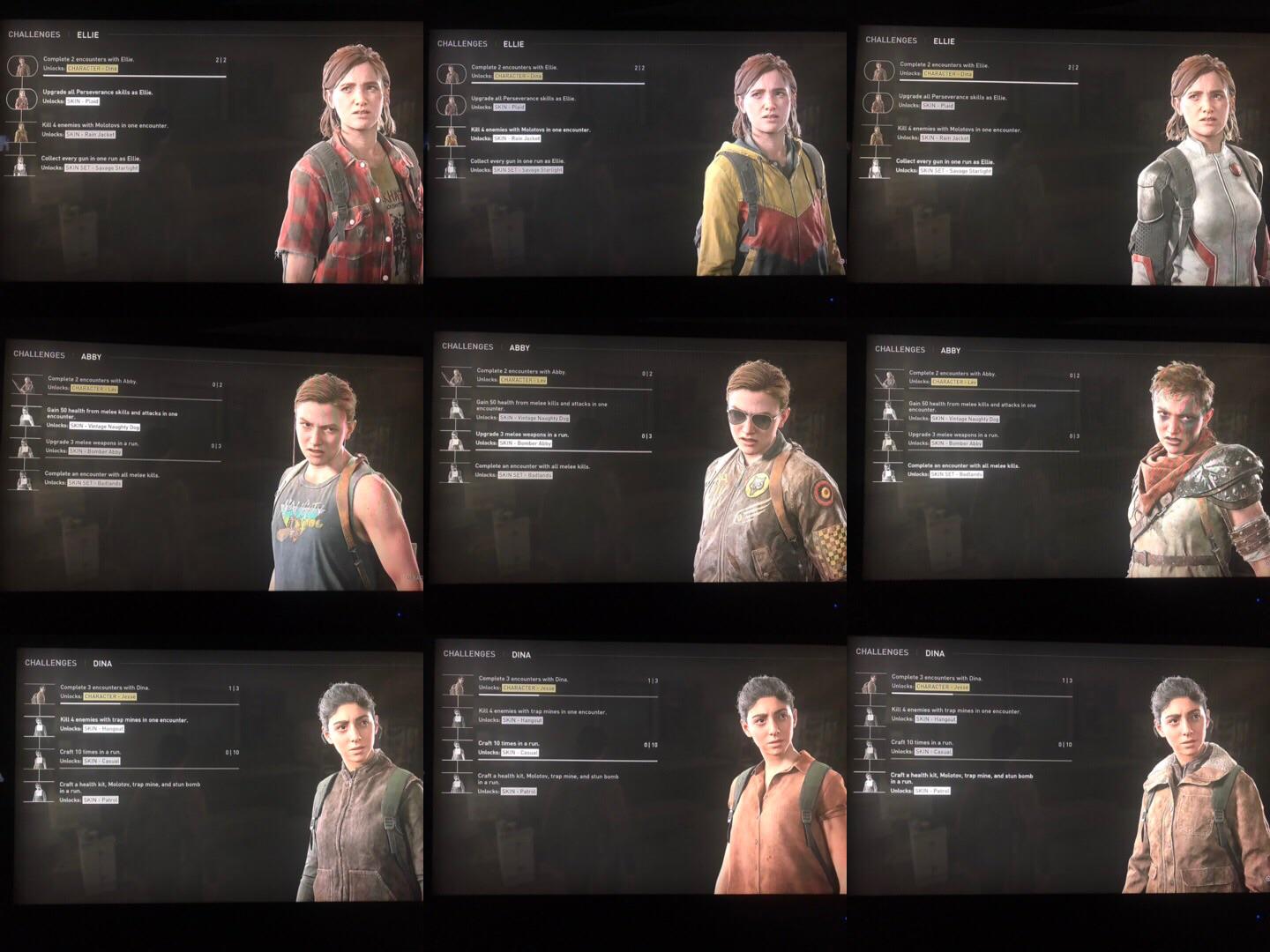 В новом игровом режиме “Нет возврата” игроки смогут сыграть за персонажей, которыми раньше нельзя было управлять, в том числе за Томми, Дину, Льва и Джесси. На одном из скринов видны шесть разных скинов на Эбби, Элли и Дину. Пользователь рассказывает, что геймплей за разных героев отличается и чувствуется по другому, ведь каждый из них начинает свой путь с разным набором пушек, умений и предметов.