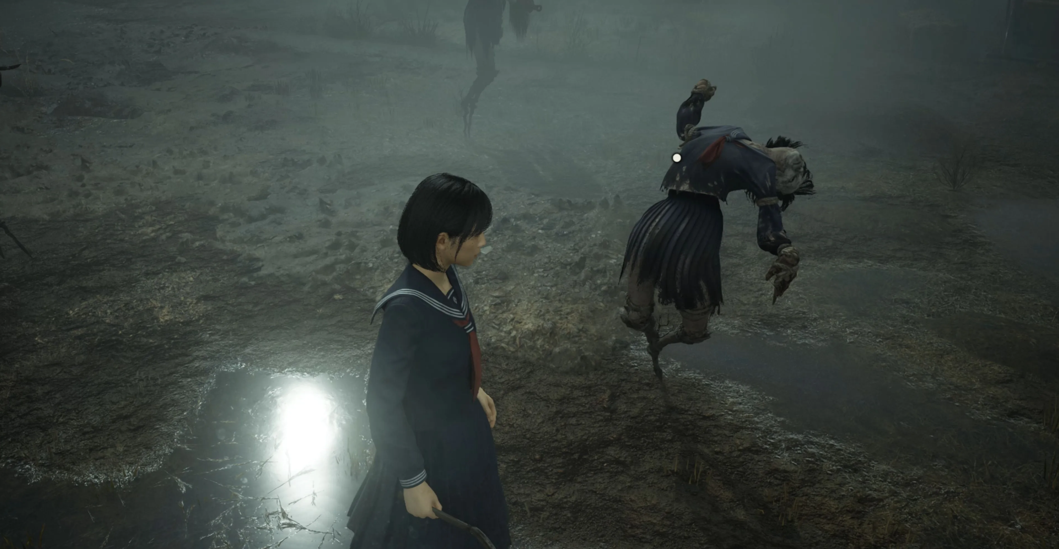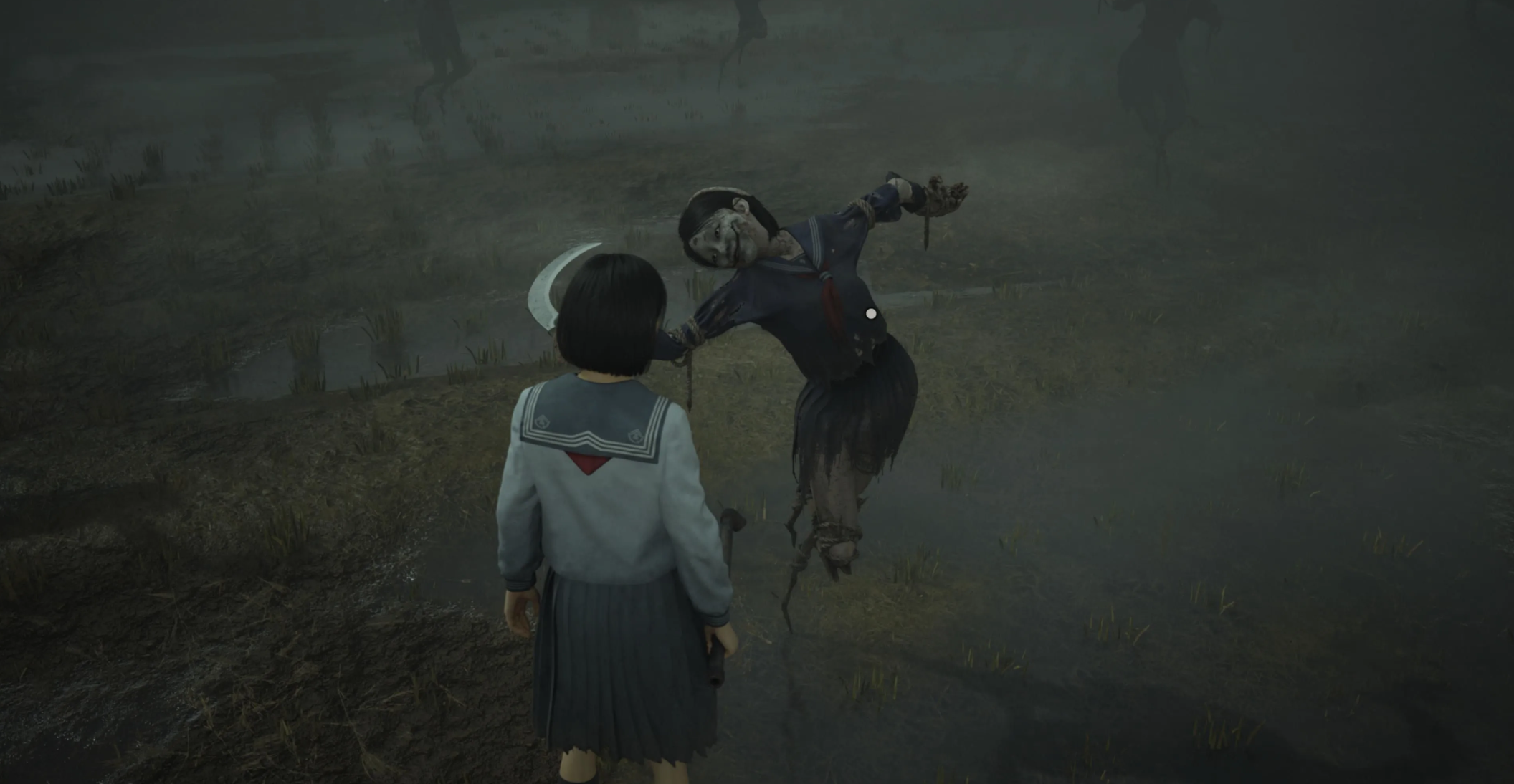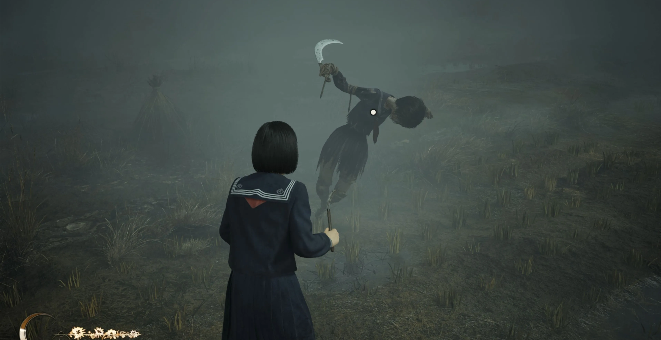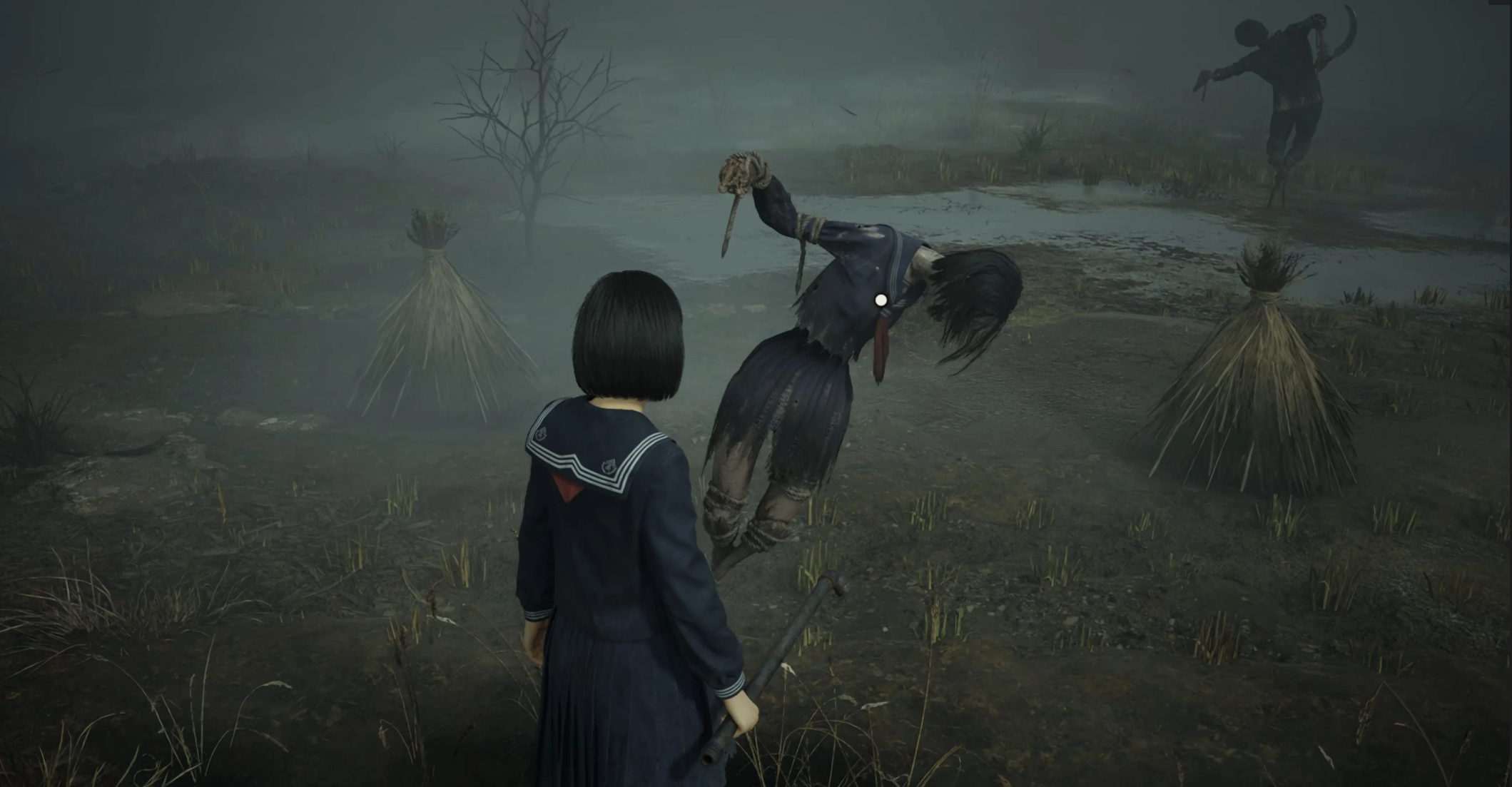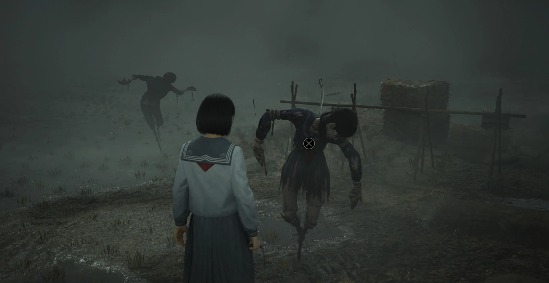 - Следующим выбором станет пугало с воткнутым в него серпом и лицом, смотрящим вниз