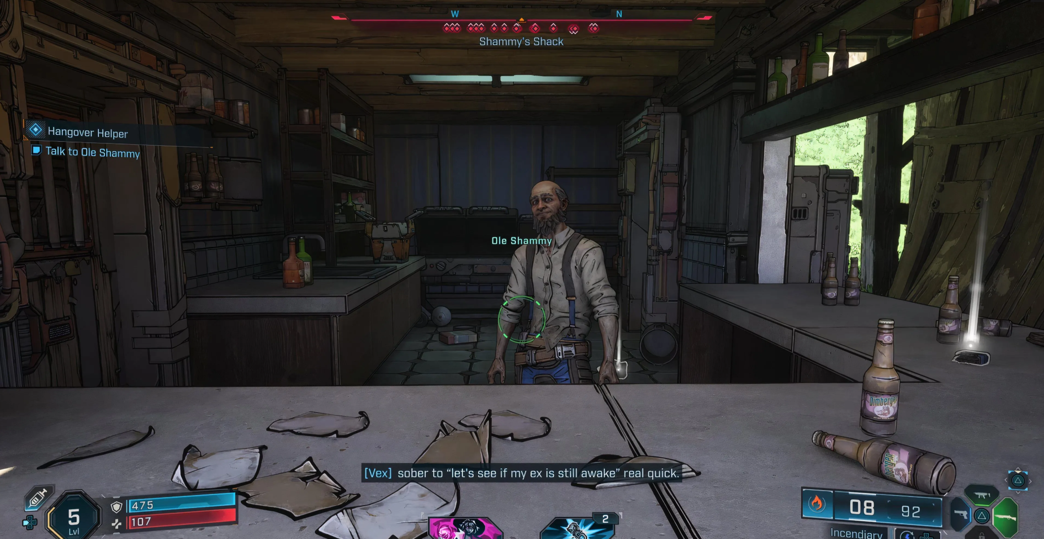 Чтобы это сделать, отправьтесь в «Лачугу Шэмми» и поговорите там с самогонщиком, который предложит вам свою помощь. Он подскажет, какие ингредиенты нужны для снадобья, и где их можно найти.