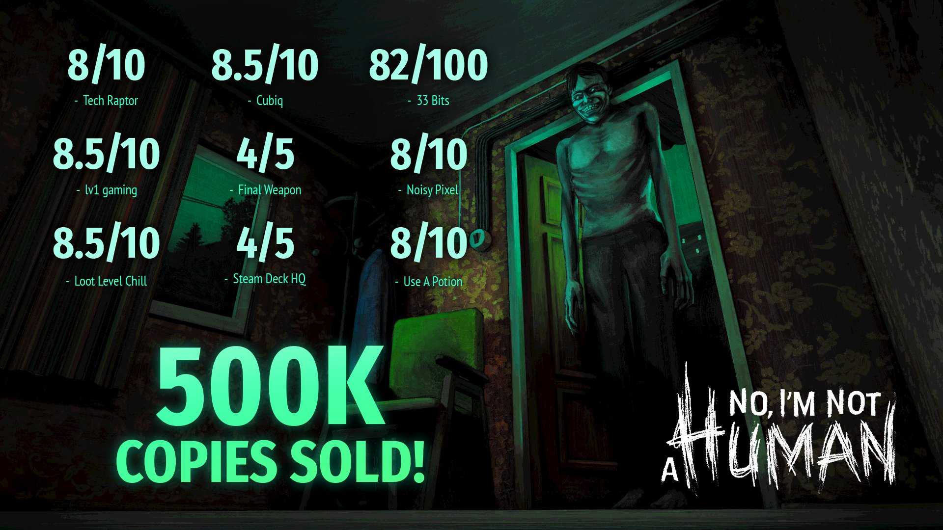 Trioskaz и Critical Reflex сообщили, что No I’m Not a Human продалась тиражом более 500 000 копий с момента релиза 15 сентября. Для небольшой инди-игры это внушительный результат, и разработчики уже пообещали, что проект получит новое контентное обновление.