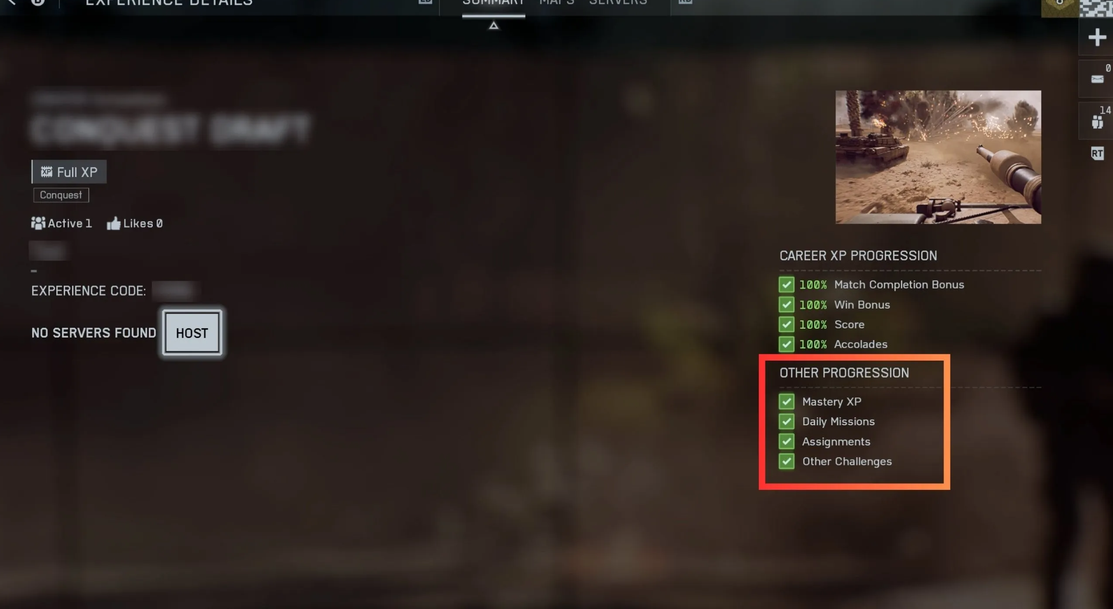 Чтобы быстро закрыть задание на починку техники, создайте свой сервер и проверьте, чтобы в графе опыта были отмечены все задания. После запуска в матч выберите класс Инженер и используйте танк или другой транспорт, чтобы повредить технику. Затем можете начинать чинить поврежденные машины. Повторяйте действия, пока задание не будет закрыто.