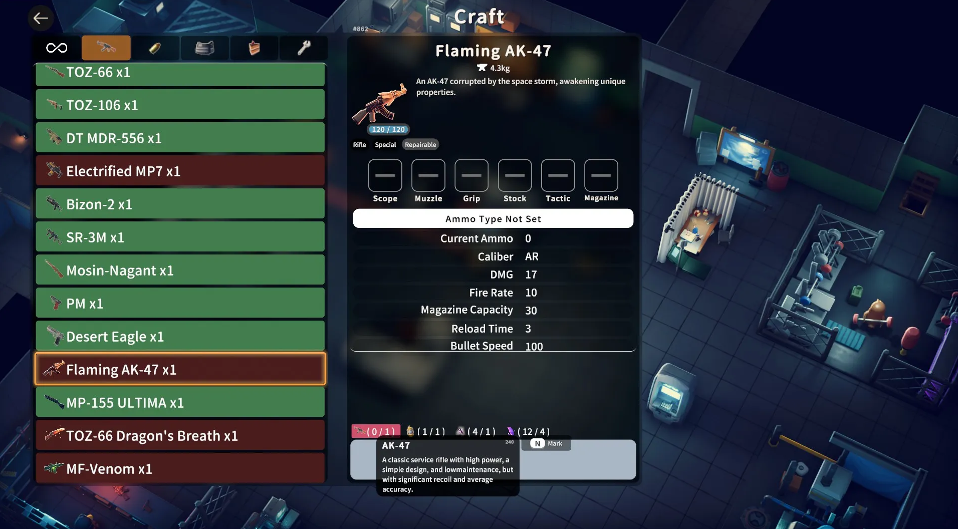 Чтобы получить улучшенную версию АК-47, нужно отправиться на вылазку и найти локацию Пещера, расположенную в центре карты. Посетите ее во время второй фазы шторма. Там вы найдете враждебную космическую сущность, после победы над которой получится залутать чертеж для огненного АК-47.