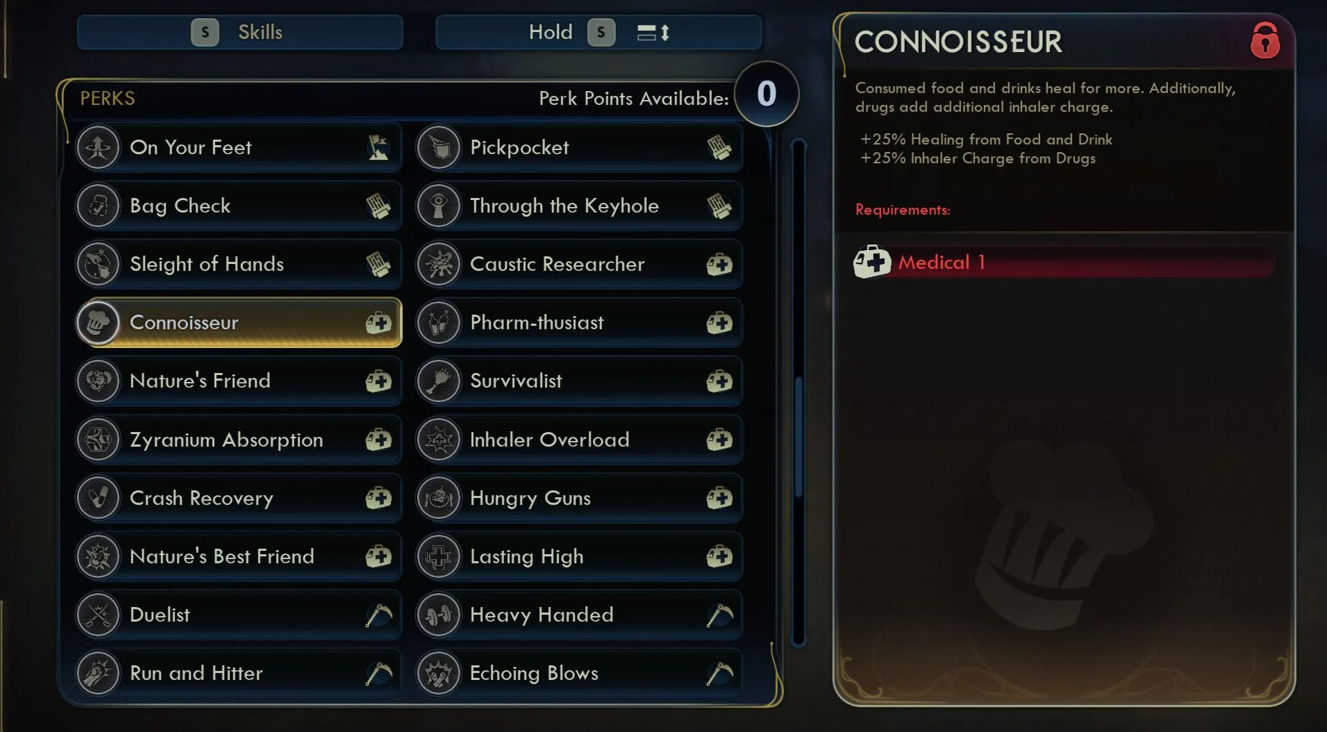 Для увеличения числа зарядов, понадобится вложить очки навыков в ветку медицины и открыть перк «Знаток», который увеличит эффективность медикаментов и еды, а также даст дополнительный заряд ингалятора.
