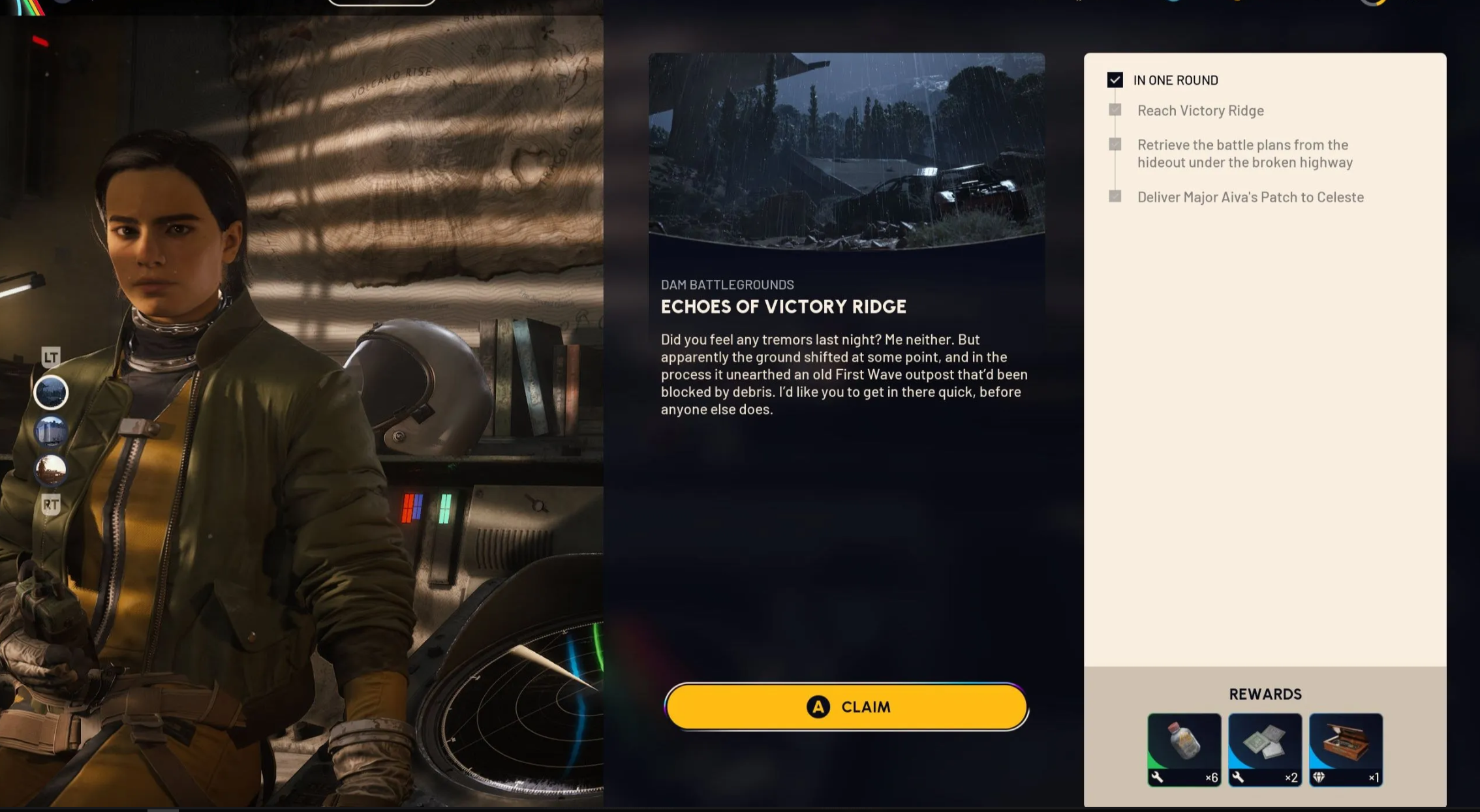 Этот квест отправит вас на поиски боевых планов, спрятанных во временном укрытии под Западным разрушенным мостом на карте «Поля битвы у Дамбы». Внутри металлического контейнера вы обнаружите Нашивки майора Айвы — их необходимо забрать и успешно эвакуироваться, чтобы получить награду и раскрыть часть сюжета.