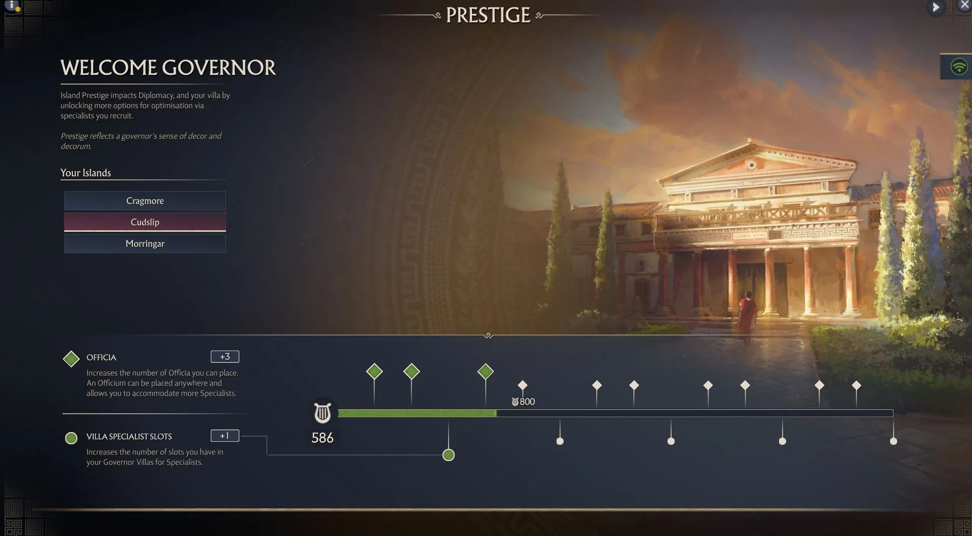 Полученного специалиста назначают в Виллу правителя или в Гостевой дом. Универсальных персонажей, увеличивающих доход или общие атрибуты, лучше размещать рядом с жилыми районами. Более узкоспециализированные персонажи, например, снижающие потребность в рабочей силе или расходы на содержание, эффективнее в гостевых домах у производственных построек. Количество слотов для специалистов и гостевых домов увеличивается с ростом престижа.