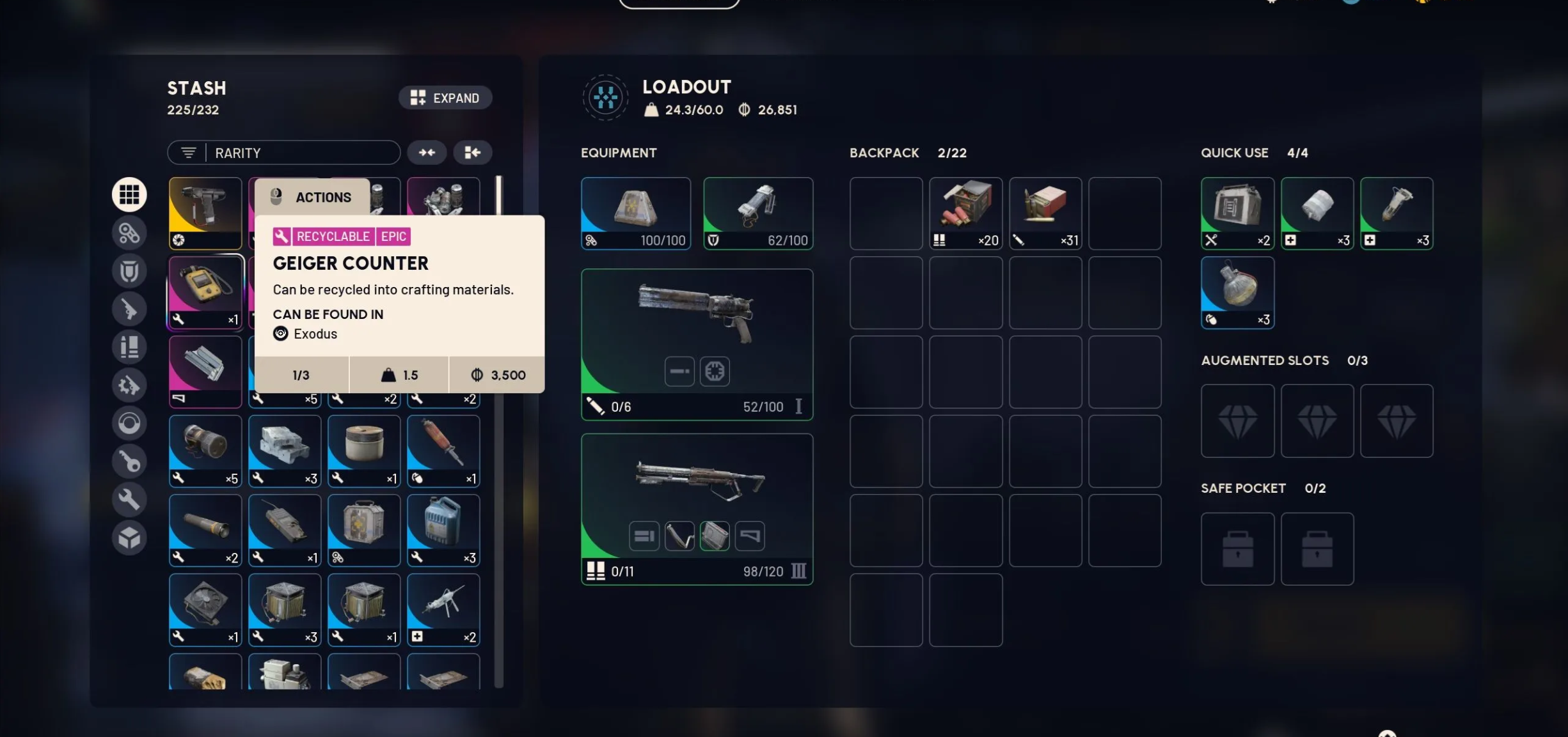 Из-за редкости счетчика Гейгера, добыча может потребовать нескольких попыток. Он продается за 3500 монет, но чаще всего выгоднее сохранить его для выполнения заданий или разобрать на компоненты, чтобы получить необходимые ресурсы для улучшения своего снаряжения.