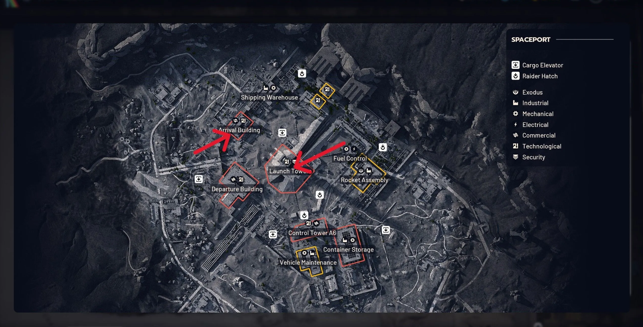 - Стартовая башня в Космопорте — второй по эффективности, содержит серверы и устройства, особенно во время Ночных рейдов