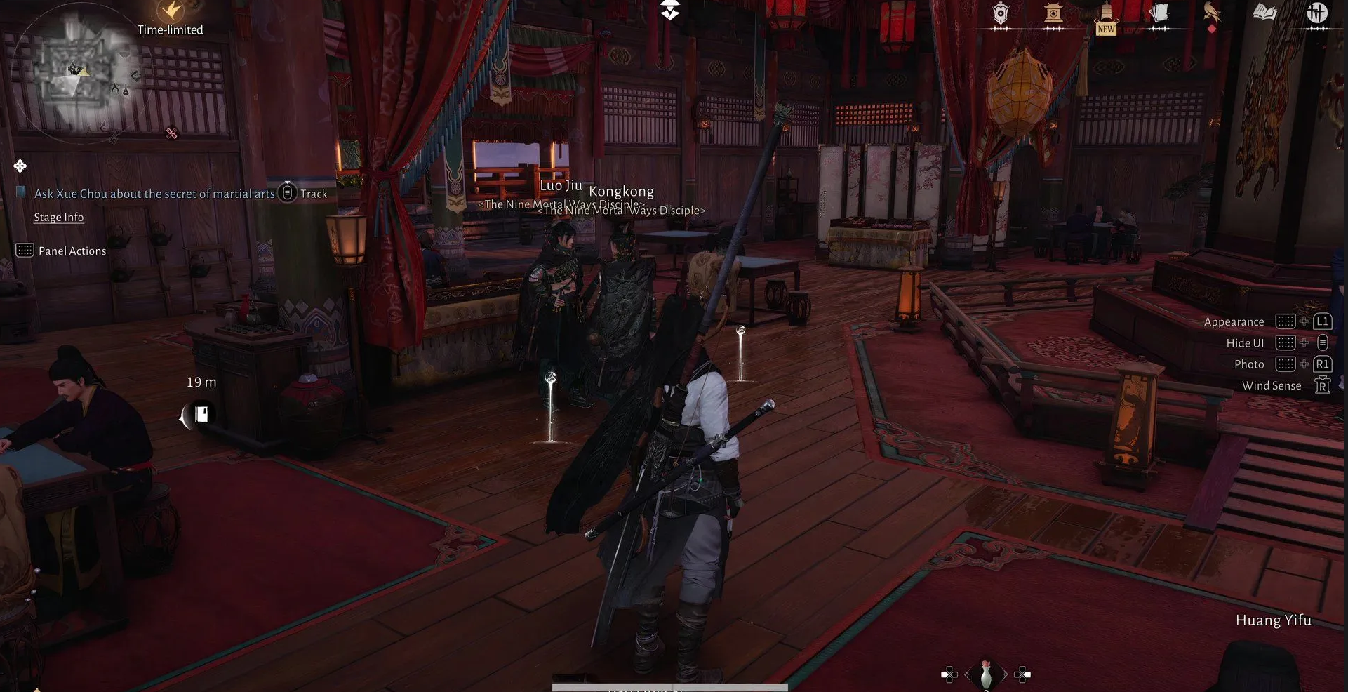 После успешного изъятия книги вернитесь в таверну к Ло Цзю. Сразу после диалога техника не появится на панели быстрого доступа. Необходимо открыть журнал, перейти в меню «Странствующие сказания» и вручную завершить квест.