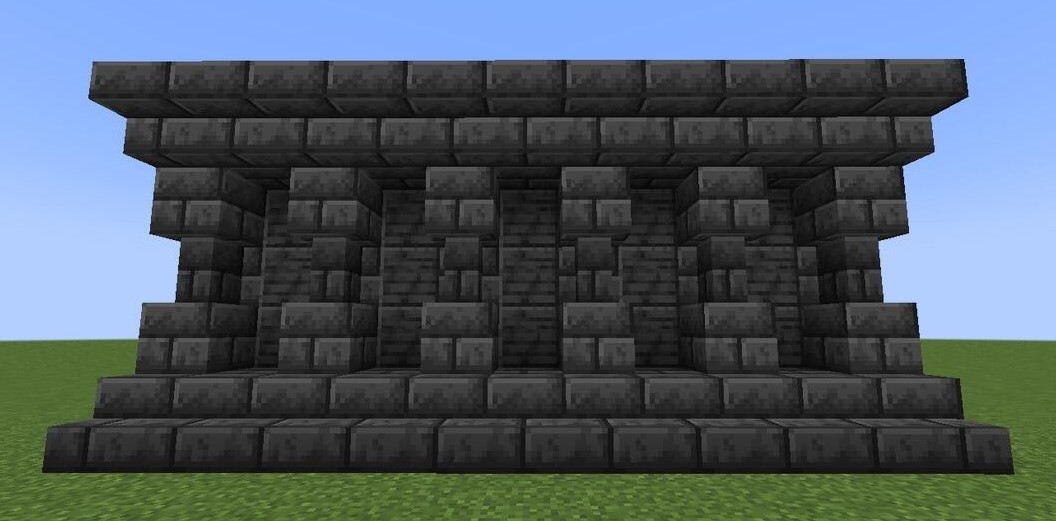Черный камень часто игнорируют, хотя его глубокий серый цвет идеально подходит для монументальных сооружений. Многослойная кладка из этого материала отлично смотрится в качестве стен сокровищницы или внешней оболочки фермы мобов.