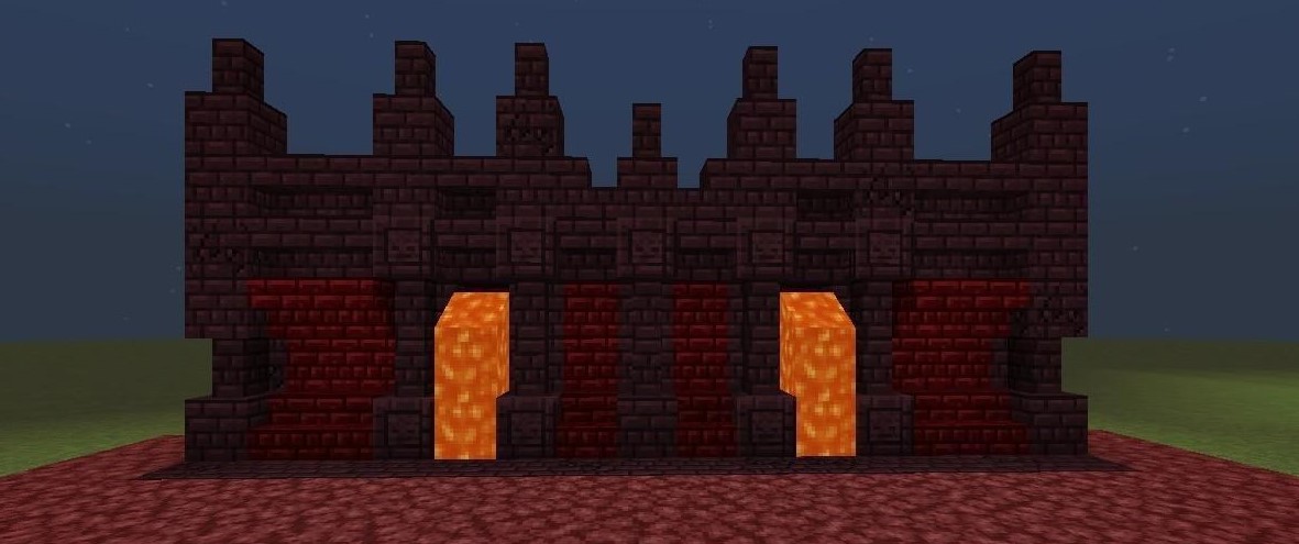 Материалы из Нижнего мира позволяют создавать яркие и опасные на вид конструкции. Темно-красные оттенки незера создают мощный контраст с зеленью обычного мира, заставляя базу выделяться на фоне окружения. Часто топовые аккаунты на серверах могут похвастаться именно такими смелыми решениями: