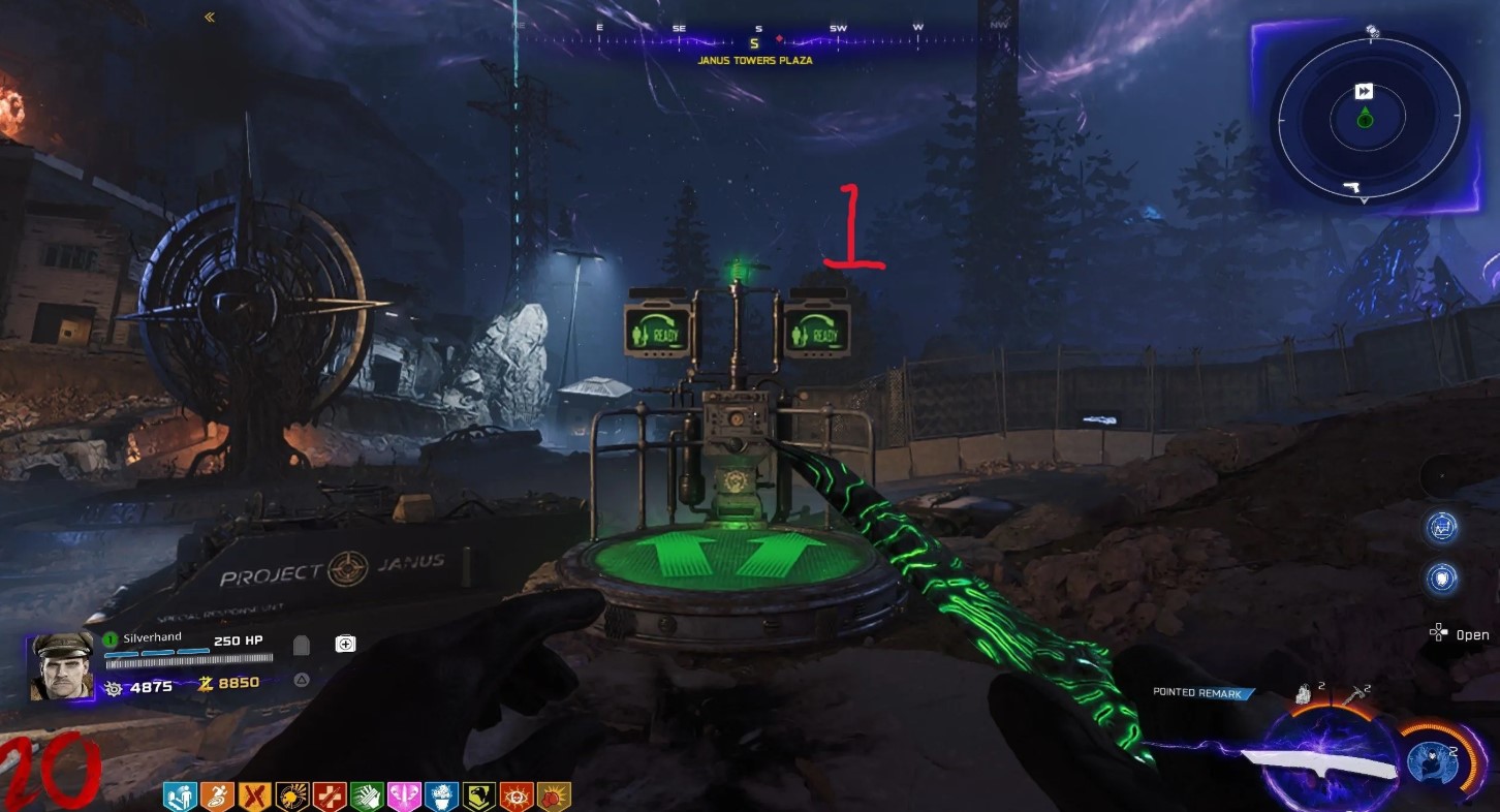 Активируйте все прыжковые платформы на уровне, затем пропустите четыре раунда и считайте световые сигналы в локации Janus Towers. Повторите маршрут согласно полученному числовому шифру, найдите фиолетовый разлом в небе и влетите в него с помощью трамплина, чтобы получить ценные предметы и мощное вооружение.