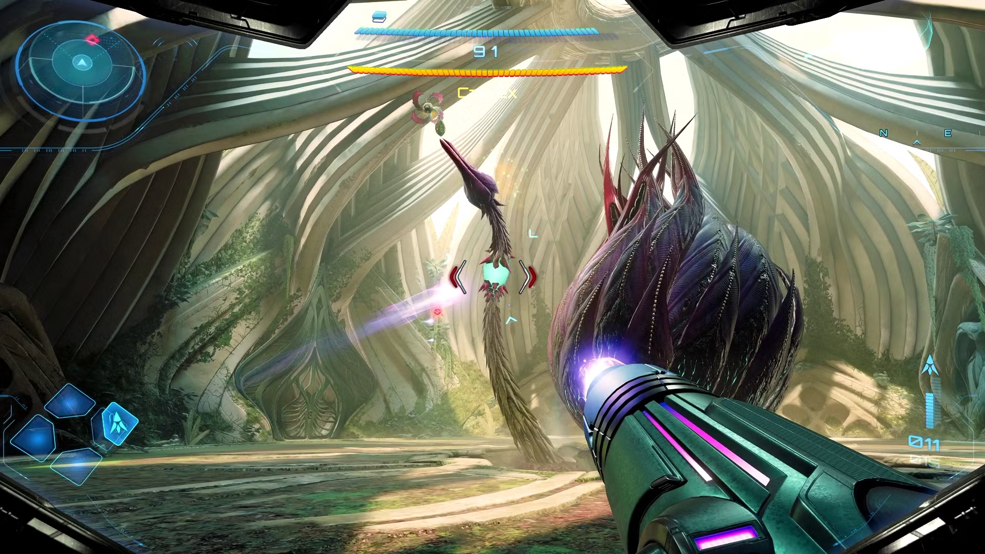 Сбейте защиту на щупальцах бластером, но не уничтожайте их по отдельности, иначе они восстановятся. Переключитесь на Психо-визор и запустите управляемый луч сразу через все уязвимые точки конечностей, а затем разрядите запас ракет в открывшееся ядро монстра.