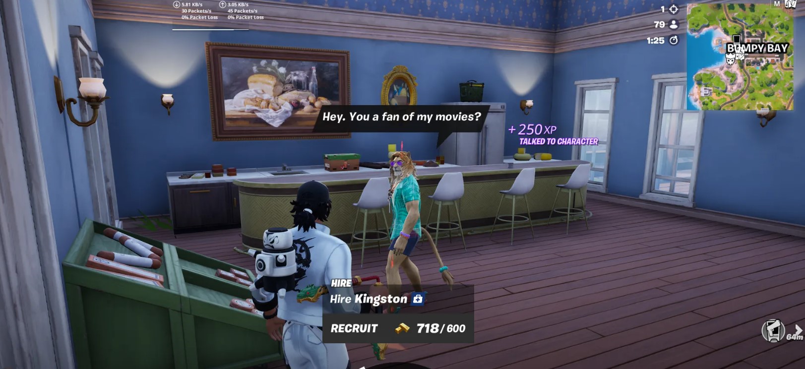 Нужный NPC обитает в северо-западной части карты. Ищите его в Бухте Бампи, непосредственно у входа в сырную лавку Funky Fromage.