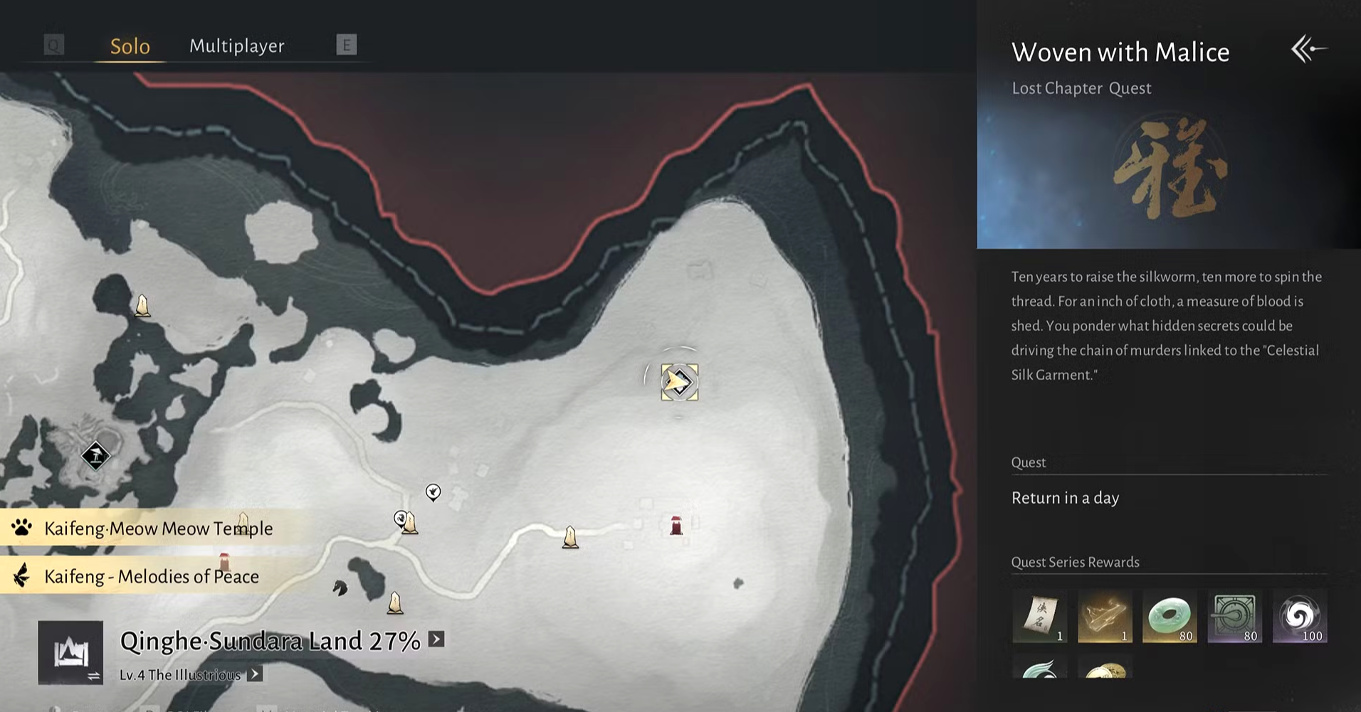 Приключение стартует в регионе Сундара, Цинхэ. Отправляйтесь на северо-восток от локации Будда-Форт и заведите беседу с Ученым. После разговора необходимо промотать время на один игровой день вперед.