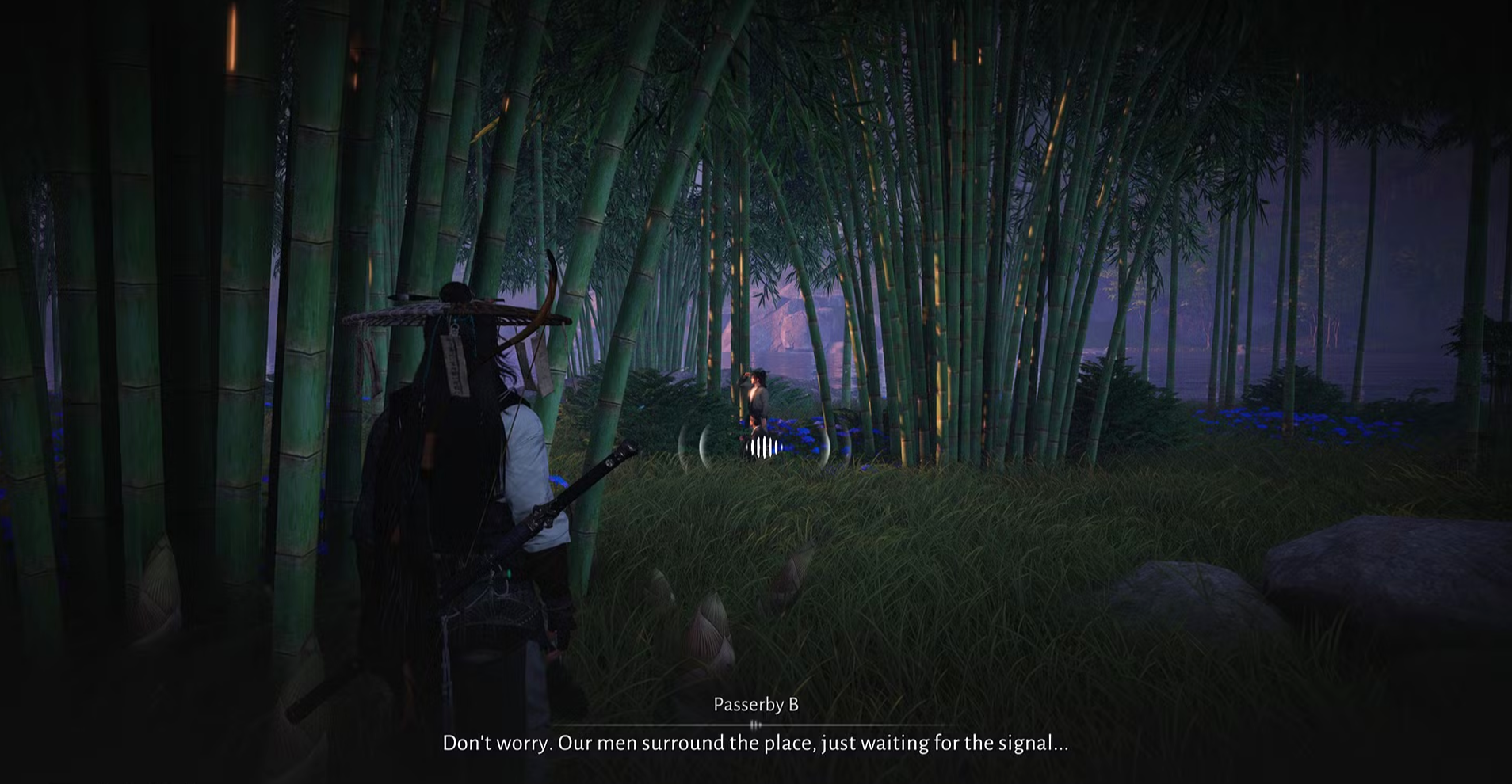 Найдите Ученого к северо-востоку от Будда-Форта, выждите два дня и помогите Маленькой Иголочке создать одеяние из собранных материалов. Расследуйте заговор вместе с Монахом Транквиллусом, украдите письмо в Бамбуковой Роще и вовремя предупредите соратников о нападении для завершения истории.