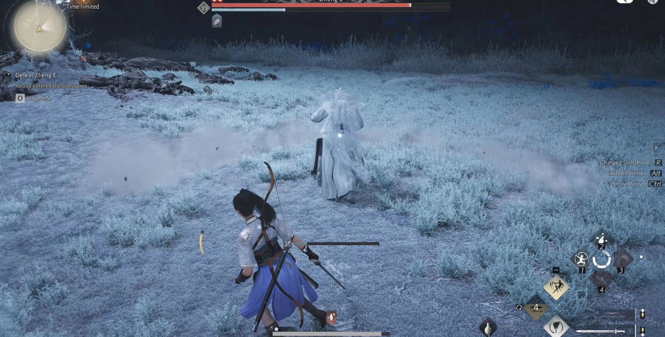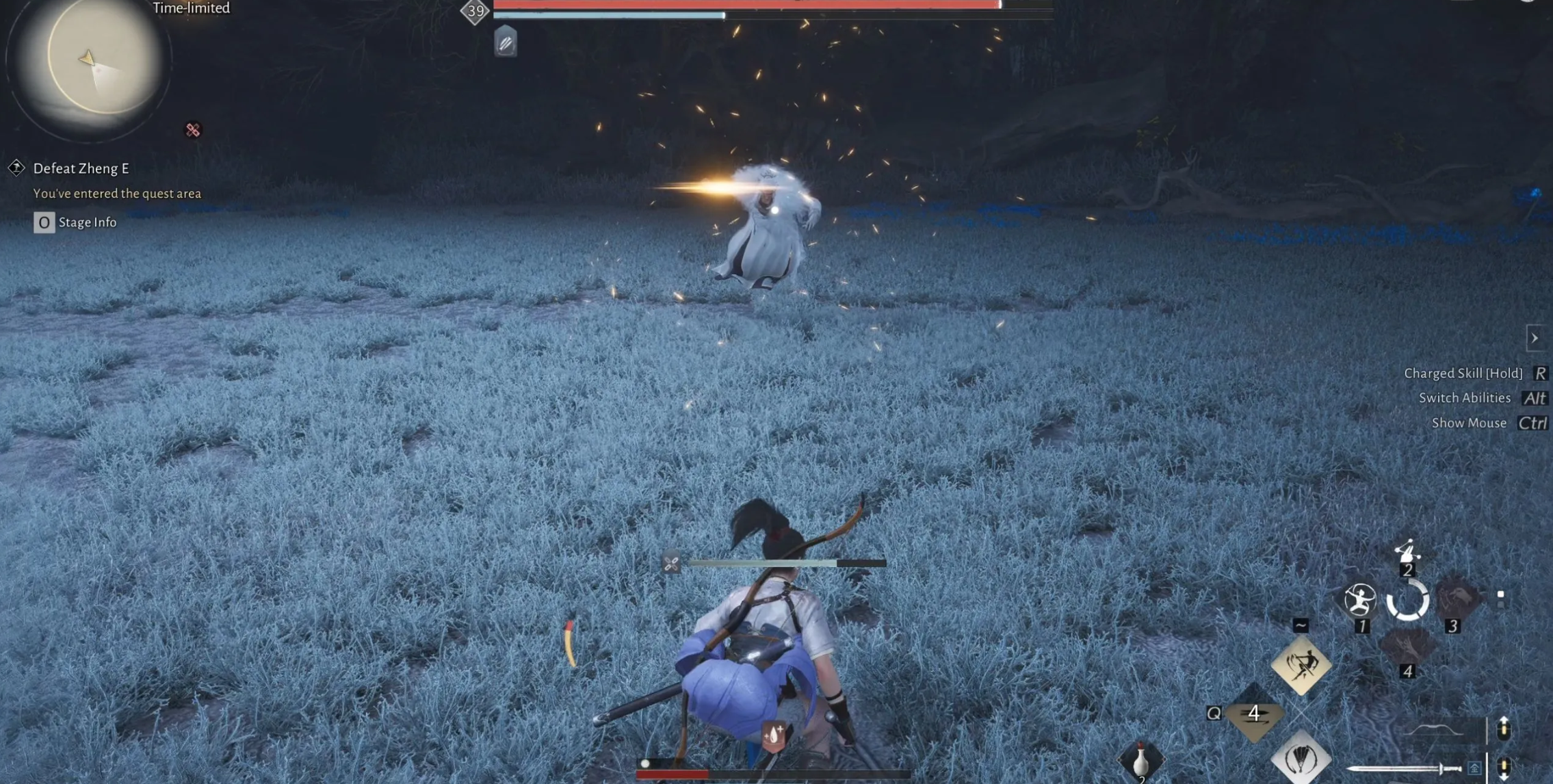 С первых секунд боя важно помнить об уникальной черте Чжэн Э — он умеет парировать ваши выпады. Необдуманная агрессия приведет к контратаке. Также следите за полоской в центре экрана: пропущенные удары заполняют шкалу обездвиживания, превращая героя в ледяную статую.