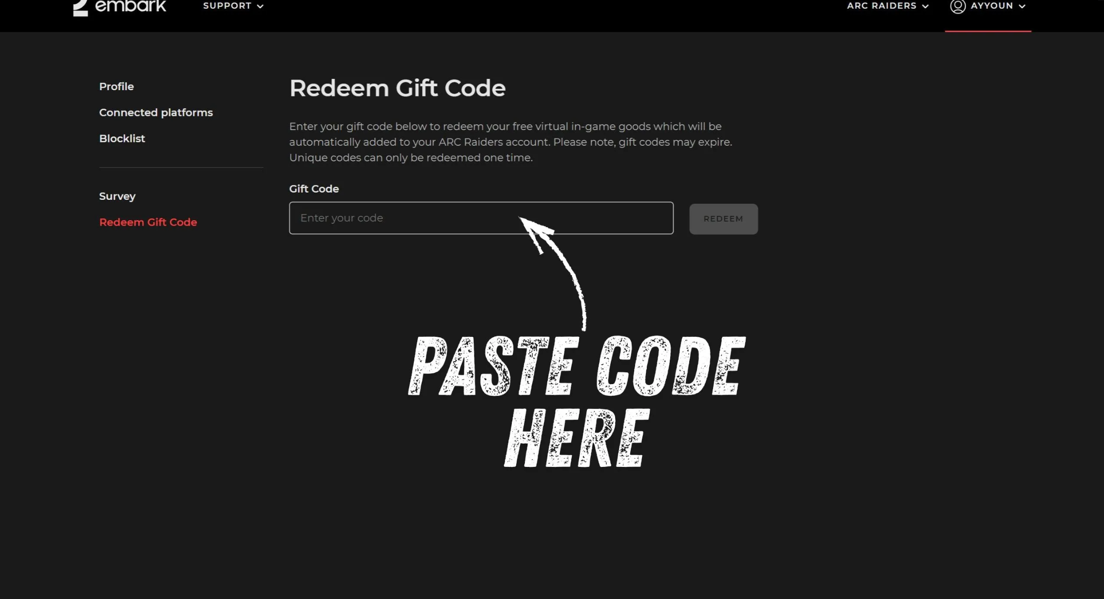 Ключ также дублируется на привязанную электронную почту. Следующий этап — гашение кода. Перейдите на официальный портал Embark ID (ссылка есть в приложении или найдите через браузер), введите полученные символы в соответствующее поле и подтвердите операцию.