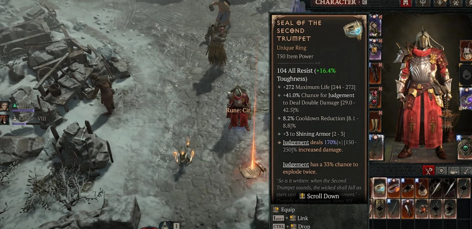 Главная фишка кольца — экспоненциальный рост урона за счет повторных детонаций. Артефакт идеально вписывается в билды через Копье Небес или Благословенный Щит. Для максимальной синергии рекомендуем использовать его вместе с Глефовым Шлемом Судии.
