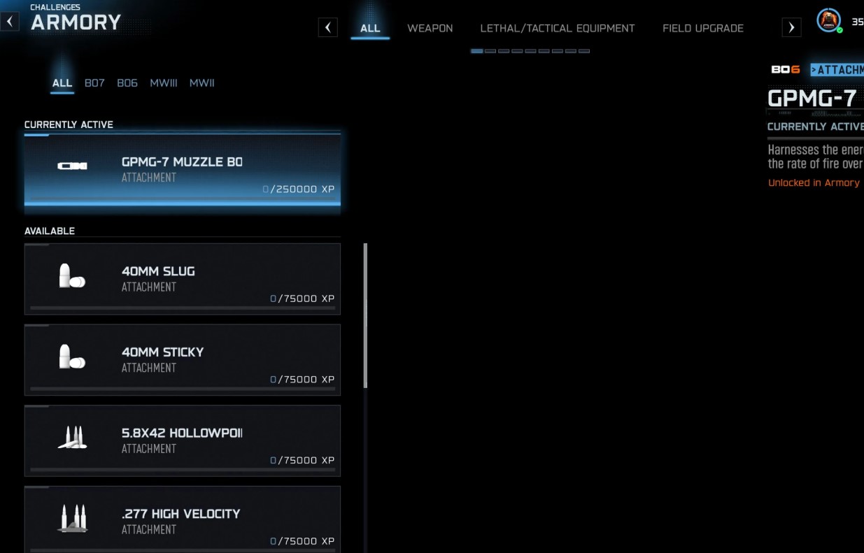 Чтобы открыть пропущенные предметы, зайдите в раздел «Испытания» главного меню и активируйте вкладку «Арсенал» для набора опыта. Доступ к стволам из предыдущих частей шутера открывается в настройках комплекта Warzone, если пролистать список категорий до самого низа.