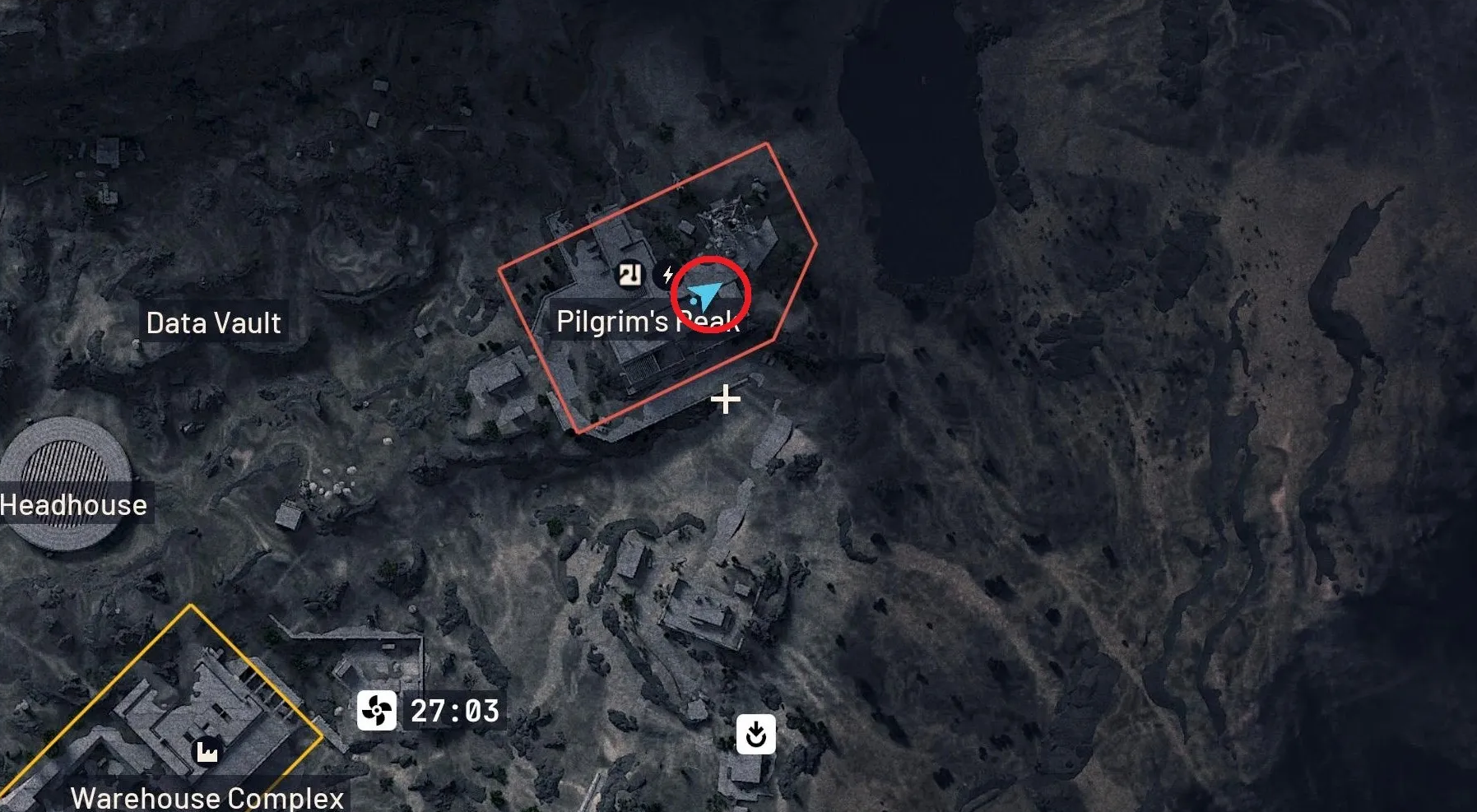 Первая цель маршрута — Пик Пилигрима, расположенный на самом севере карты. Это место притягивает множество бойцов, желающих поживиться, поэтому будьте начеку.