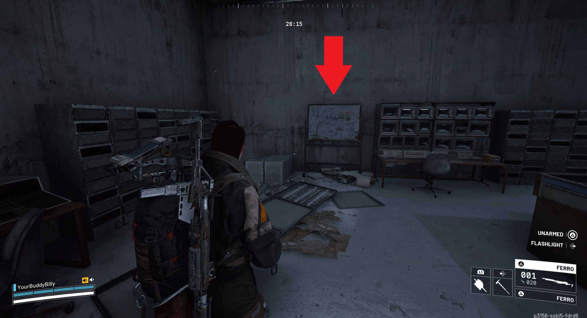 Внутри помещения взаимодействуйте с белой маркерной доской справа. Не забудьте осмотреться: здесь часто спавнятся кейсы с вооружением и другие полезные предметы.