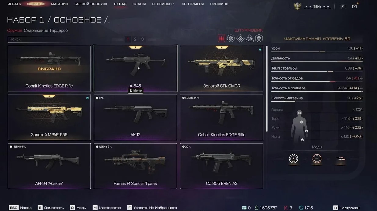 - Мощный арсенал: наличие актуального золотого и метового оружия с лучшими модами, которое дает статистическое преимущество в уроне и точности