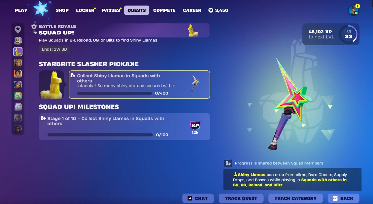 Для разблокировки награды нужно вступить в отряд и совместно с напарниками накопить 400 Блестящих Лам. Учитываются действия всех участников группы, а прогресс засчитывается в большинстве актуальных режимов королевской битвы.