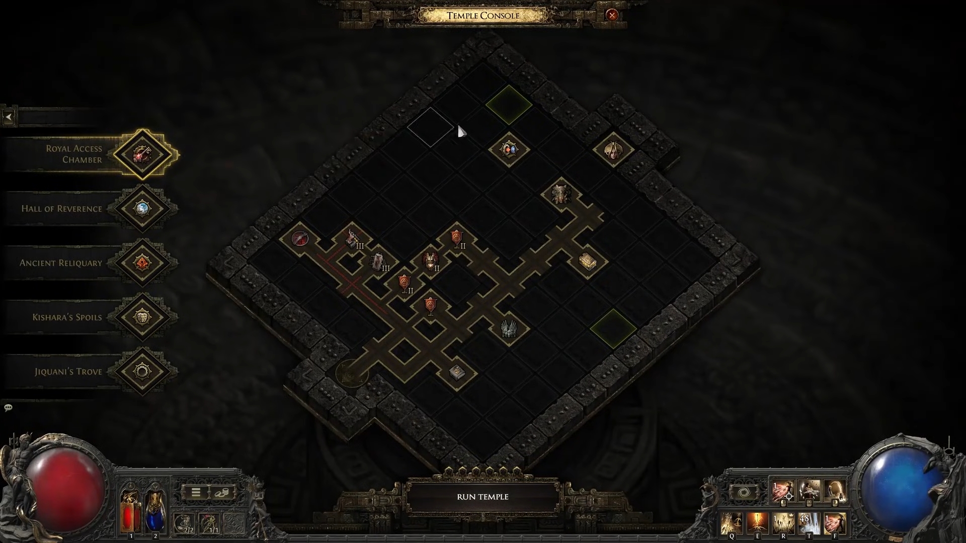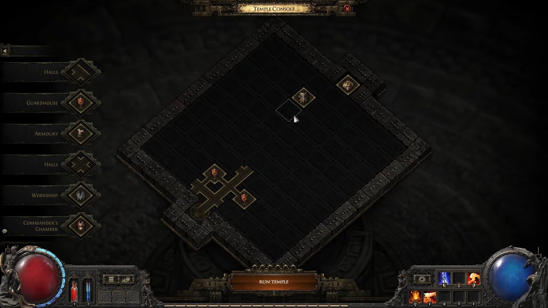 Внутри руин находится управляющая плита. Активировав ее, вы получите доступ к интерфейсу подземелья для размещения шести доступных залов.