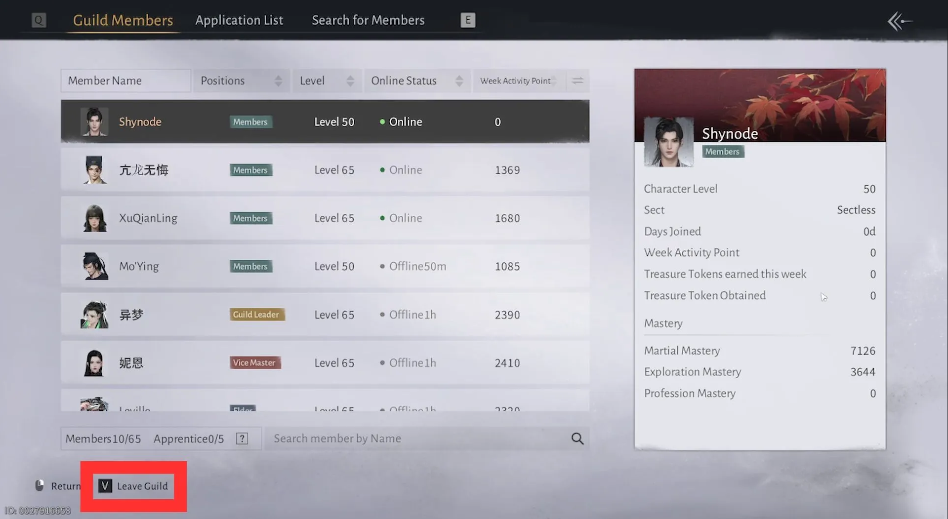 Чтобы перестать быть частью группы, откройте меню гильдии через стартовый экран и перейдите к списку участников. В правой панели активируйте режим просмотра, нажмите клавишу выхода и согласитесь с предупреждением системы.