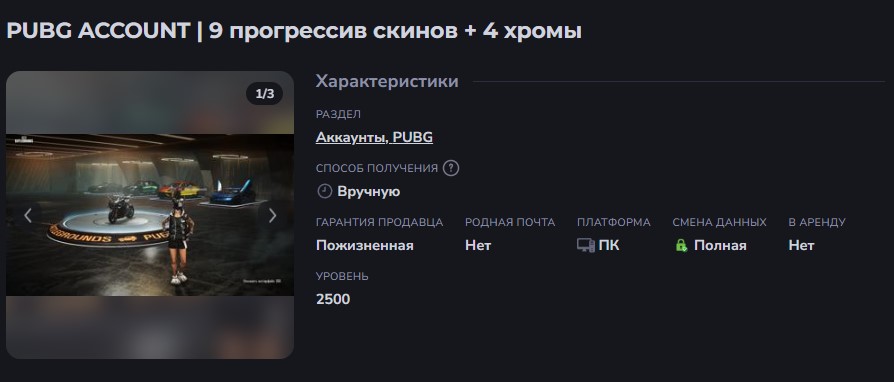 Дальше цены идут только вверх. Условно, за ~10000 рублей вы получаете Steam аккаунт с кучей игр, включая ARK: Survival Evolved, CS 2 с Prime-статусом и тому подобные, а в PUBG вы найдете MP5K Невесомость 5 уровня, M416 Нет сигнала с чертежом черно-желтый 7 уровня, Porsche Cayenne Turbo GT, 911 Carrera GTS с оттиском Obsidian Ink Red, Bugatti Chiron с оттиском Midnight Viridian и кучу подобных плюшек.