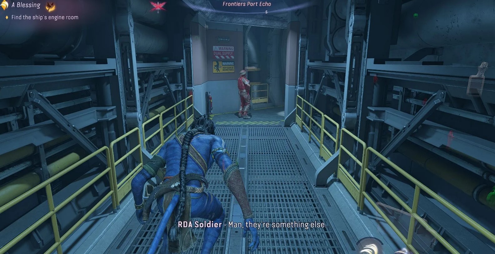 Двигайтесь по трубам и шахтам, пока не попадете в диспетчерскую. Взломайте систему, чтобы открыть грузовые створки, и выходите к капитанскому мостику. Избегайте патрулей и ищите сломанного робота-пса — это верный знак. На мостике Тейлан вручит вам нож ДКР, способный перегружать электронику.