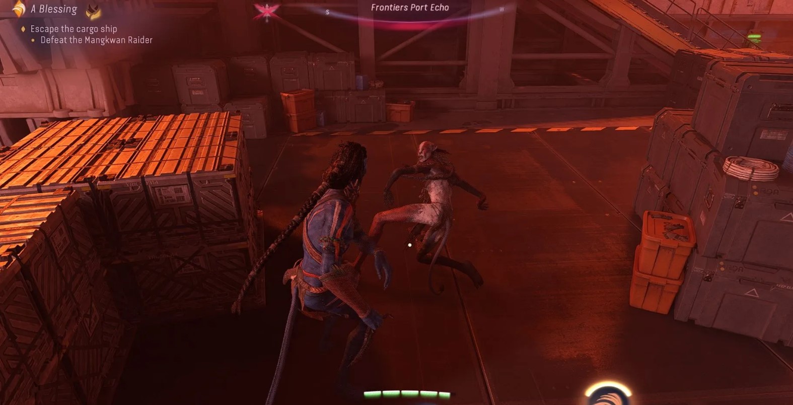 Выходите в грузовой отсек и откройте ворота через консоль. Путь преградит налетчица Укнам. Используйте контейнеры для маневров и атакуйте ее с высоты. После победы заберите жетон и приступайте к финальной фазе побега.