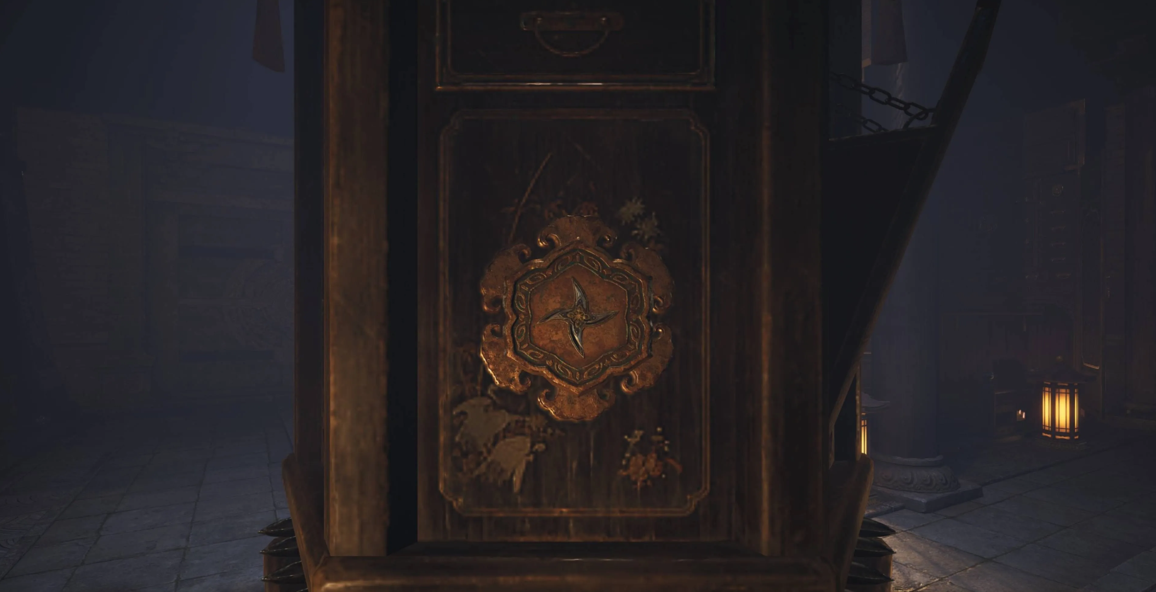 Далее предстоит этап скрытности. Держитесь вплотную к союзнику, заберите ключ из боковой комнаты и подождите, пока Чжао отвлечет стражу ложной тревогой. Внутри здания пройдите в левое помещение к книжному шкафу.