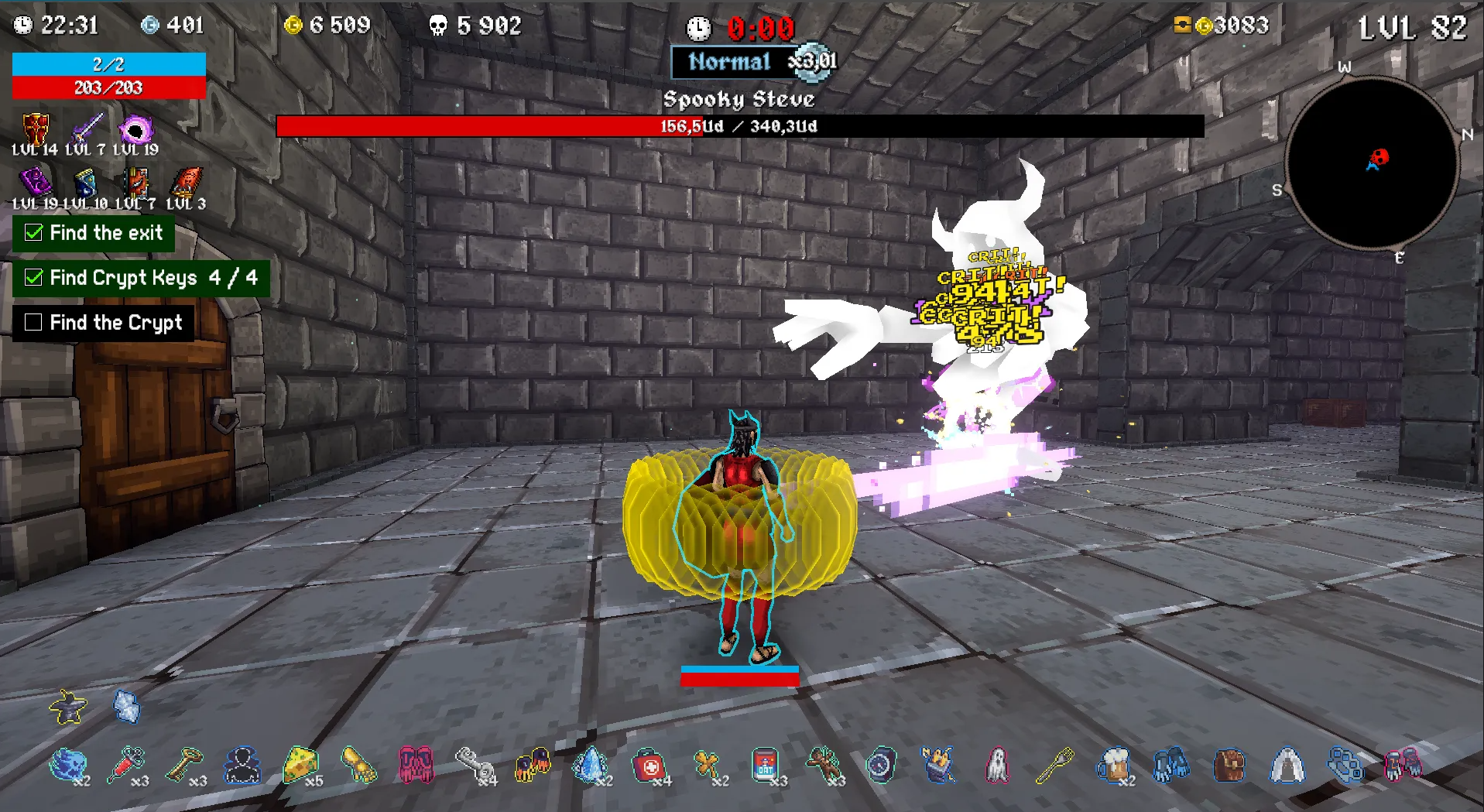 Жуткий Стив обладает колоссальным здоровьем в 340.3Ud и наносит удары силой более миллиона единиц. Традиционная защита бесполезна. Ваша цель — не дать монстру атаковать, удерживая его в вечном контроле.