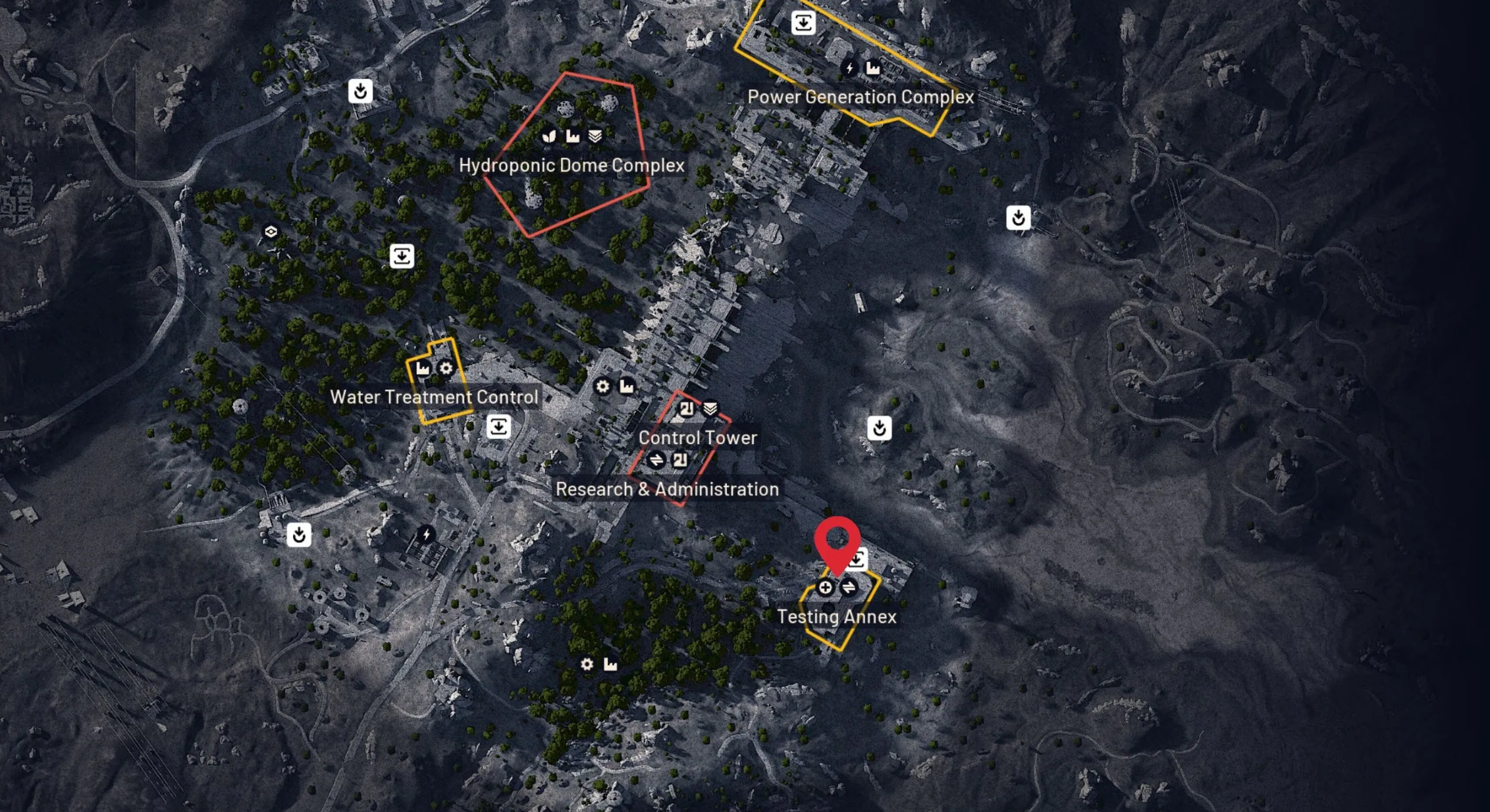 На карте «Плотина» вашей целью станет «Текстильный анклав» в юго-восточном секторе. Перед осмотром устраните патрулирующих Попсов и дронов. Обойдите кольцевой коридор первого этажа, где сосредоточено большинство ящиков. Для доступа к закрытому подвалу с дополнительной добычей вам понадобится ключ от «Испытательного анклава плотины».