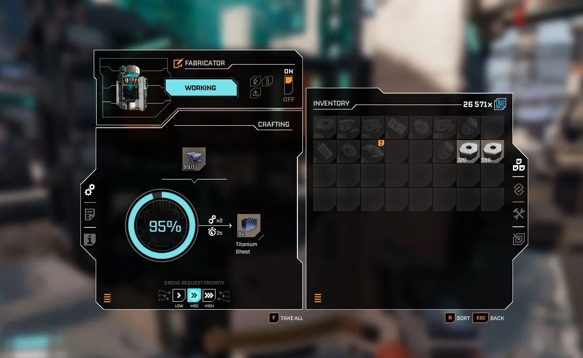 Вернувшись на базу, подойдите к станции рецептов. Для разблокировки технологии производства придется потратить определенное количество ресурсов: титановый лист, титановый стержень и очки данных. Как только исследование завершится, компонент станет доступен для крафта на любом фабрикаторе.