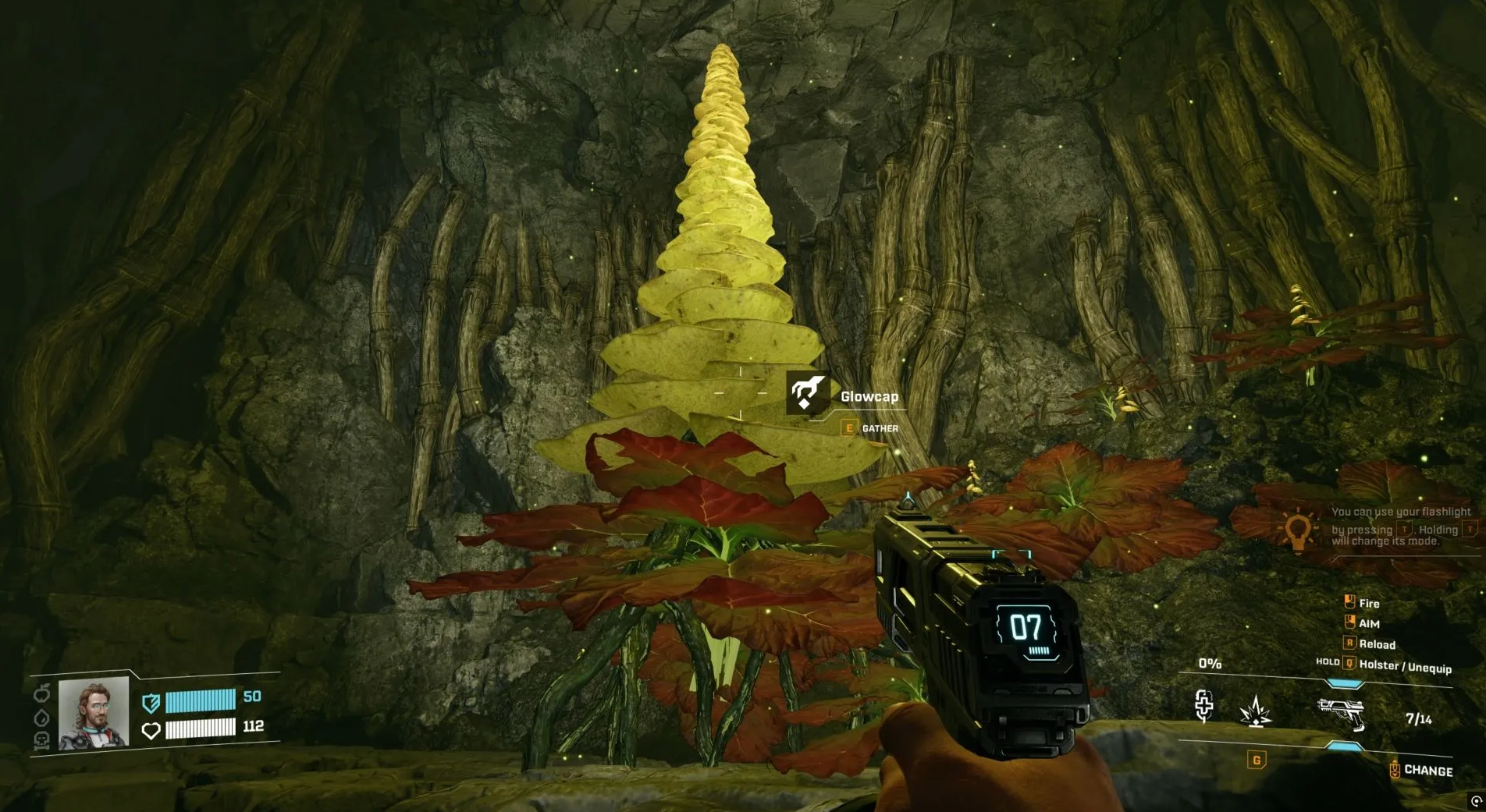 По мере прохождения игры вы будете отдаляться от базы, встречая серьезные угрозы. Для выживания потребуются расходные материалы, создаваемые из местной флоры. Самым труднодоступным растением являются Светлячковые грибы (Glowcaps). Они скрыты в подземельях, которые на карте обозначаются вопросительным знаком или символом расколотого круга.