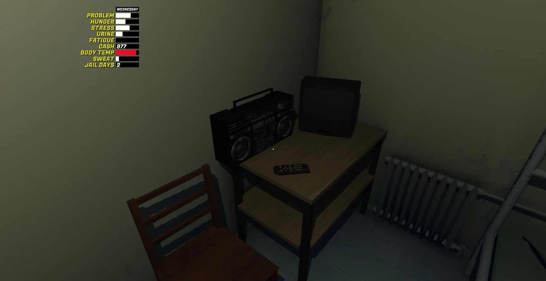 В тюрьме в левом углу экрана появляется счетчик оставшихся дней, который рассчитывается исходя из тяжести всех совершенных преступлений. Делать внутри практически нечего, интерактивность ограничена сном, прослушиванием радио и просмотром телевизора с плохим сигналом.