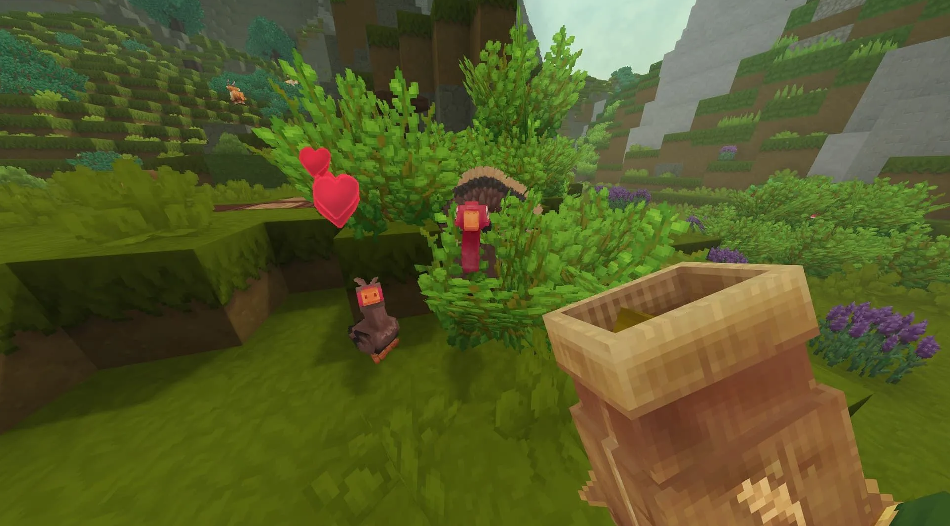 Эссенция выпадает при сборе урожая, а пшеницу несложно вырастить самостоятельно на вскопанной земле. Если взять наполненный мешок в руки, мелкая живность вроде кроликов, поросят или цыплят сменит гнев на милость. О симпатии просигнализируют сердечки над головами мобов. Также некоторые виды реагируют на конкретную еду, например, лошади и зайцы любят морковь.