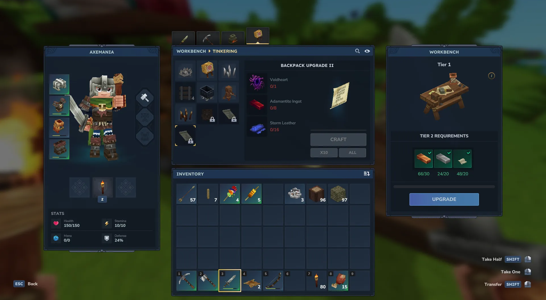 Металлы добываются в шахтах и переплавляются в печи, а ткань можно выбить из гуманоидных монстров, например, скелетов или трорков. Когда верстак готов, найдите рецепт рюкзака в нижнем ряду меню.