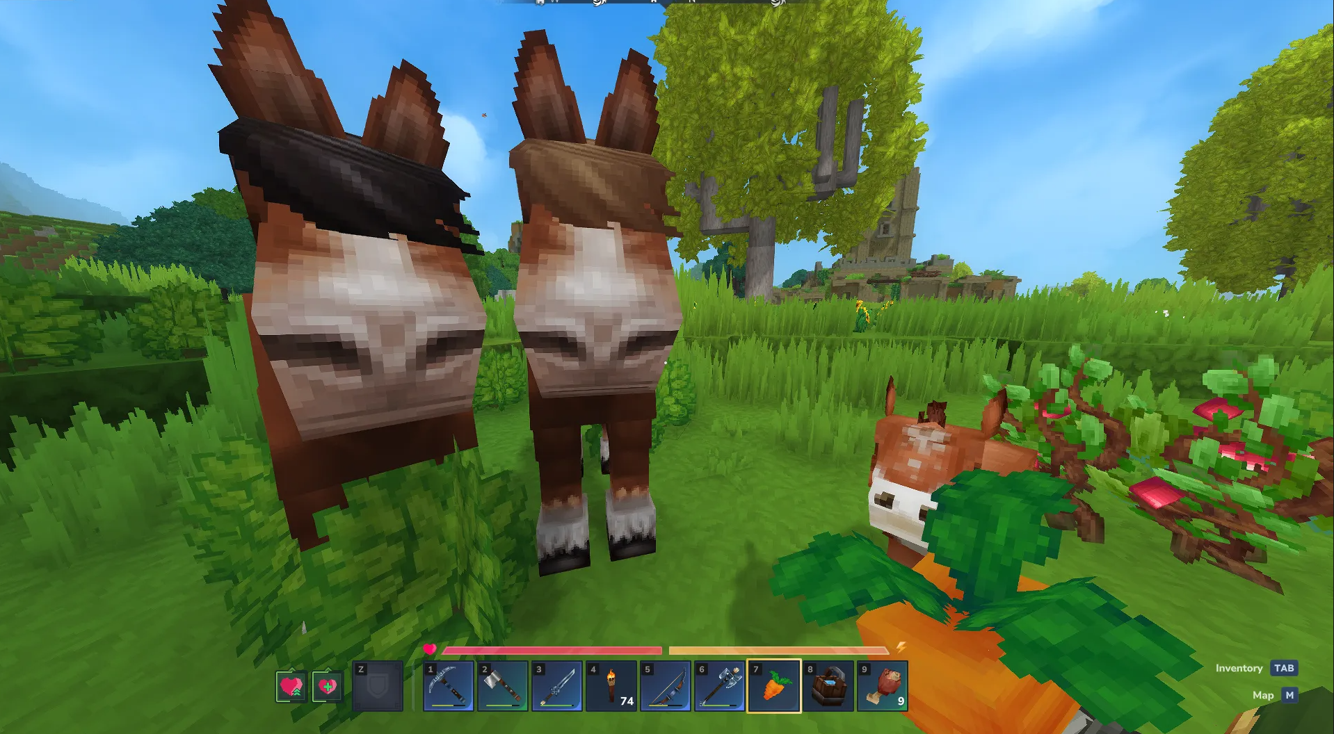 На текущем этапе разработки полноценная механика привязанности отсутствует, однако возможность оседлать скакуна уже доступна. Чаще всего эти животные обитают среди холмов и зелени, но при виде игрока они обычно пугаются и стремятся скрыться.