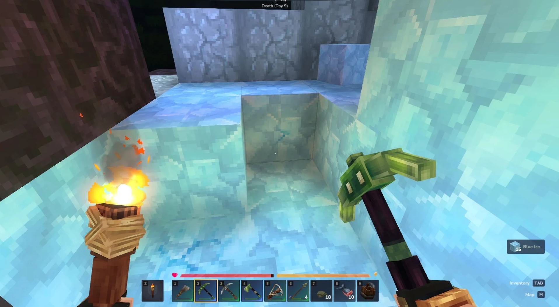 Особую ценность представляет синий лед. Он отличается светло-голубым цветом и встречается вкраплениями среди обычных блоков или вокруг синих кристаллов. Это редкая находка, которую не стоит пропускать при исследовании локации.