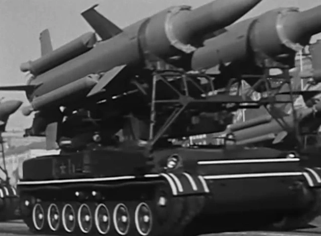 Для иллюстрации новостей авторы взяли реальную запись парада от 7 ноября 1971 года. В кадре видна колонна зенитно-ракетных комплексов «Круг», принятых на вооружение в 1965 году и известных на Западе как SA-4 Ganef.