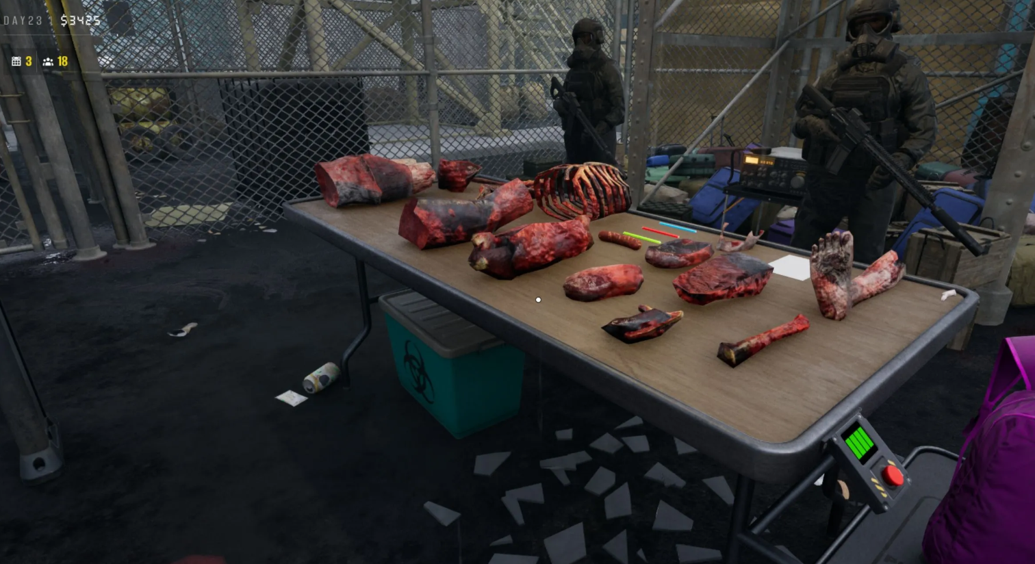 Начинайте внимательный досмотр вещей всех прибывающих на двадцатые сутки. Ваша цель — обнаружить персонажа, у которого в инвентаре спрятана золотистая бутылка из-под газировки и голова инфицированного. Имя NPC генерируется случайно, но по сюжету это ученый Стюарт.