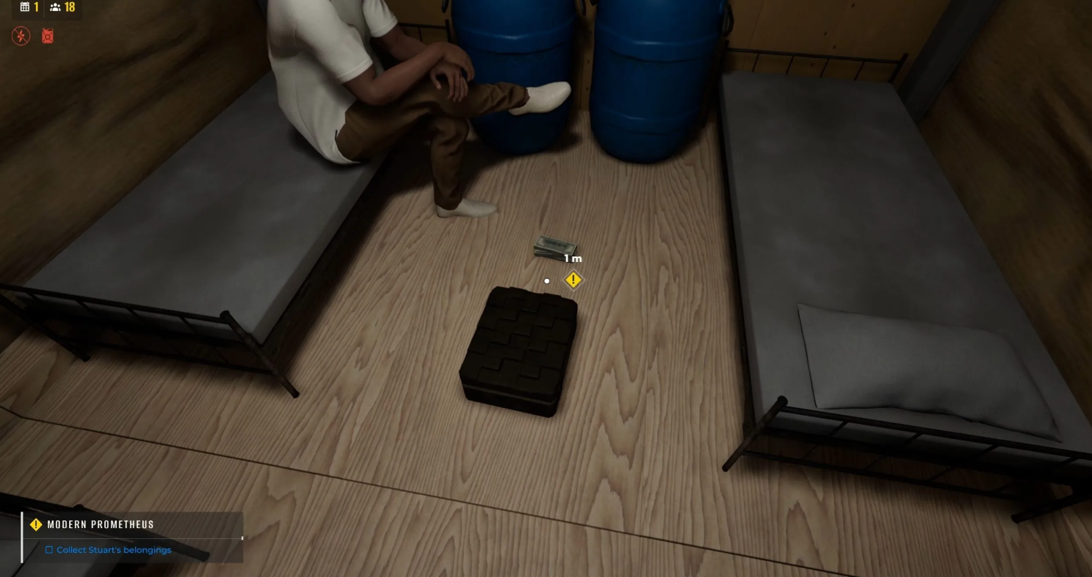 Взаимодействие с его багажом активирует диалог. После разговора обязательно направьте гостя в Блок выживших. Любое другое решение моментально обрывает сюжетную ветку.