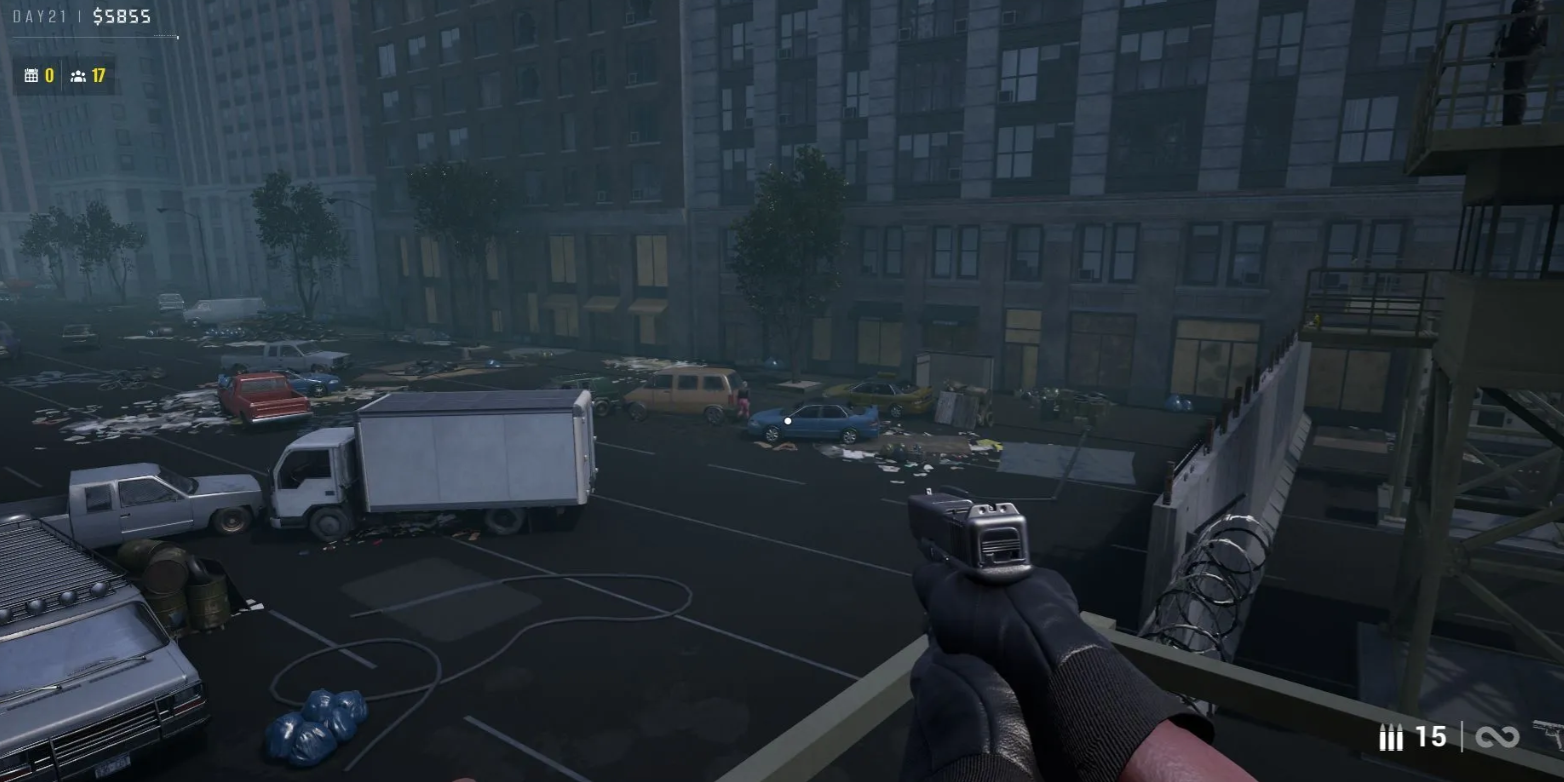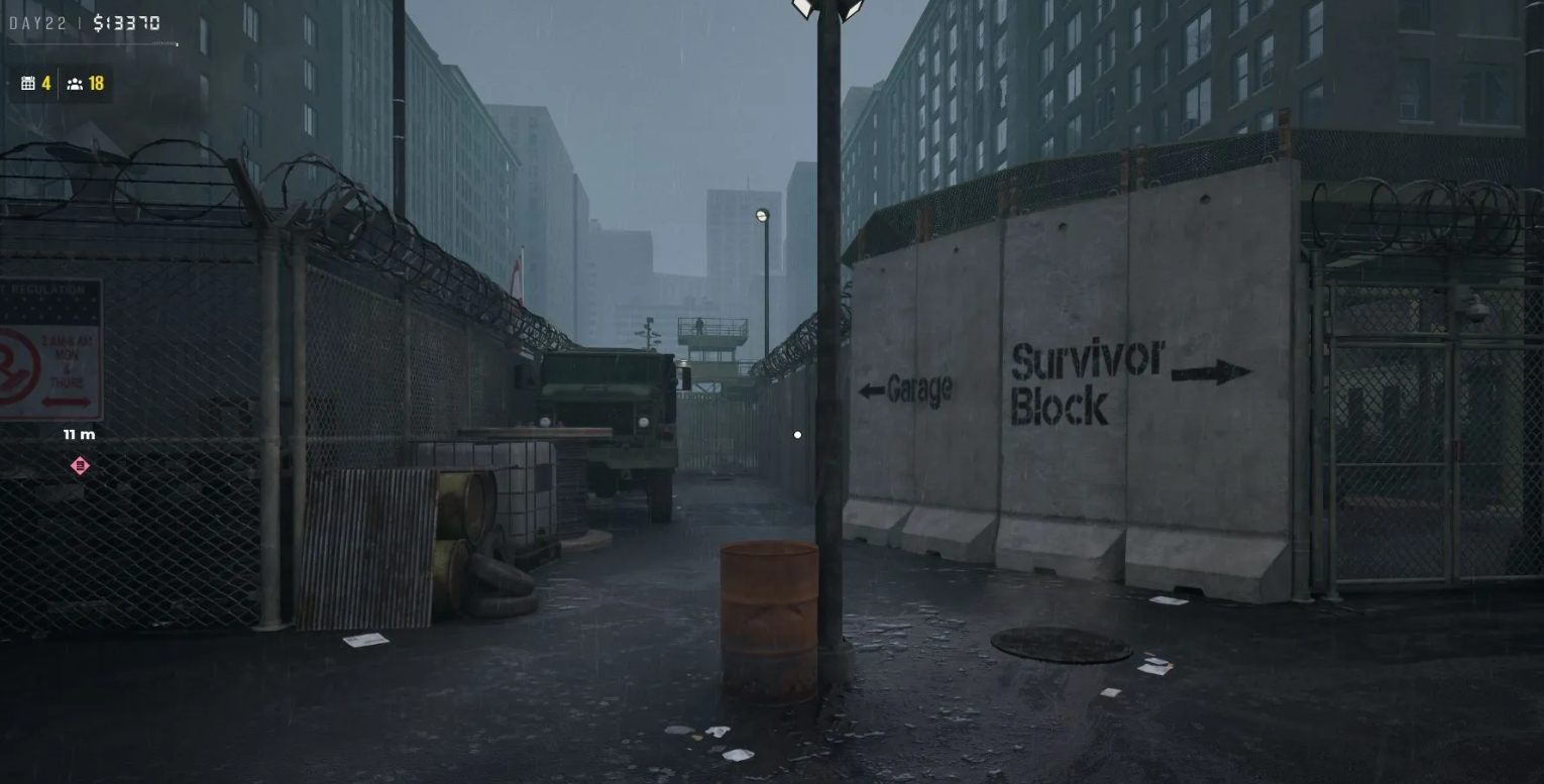 Доберитесь до зоны гаража, найдите ворота без колючей проволоки и заберитесь на наблюдательную вышку. Оттуда расстреляйте трех зараженных, гуляющих с внешней стороны стены, чтобы закрыть контракт и получить награду.