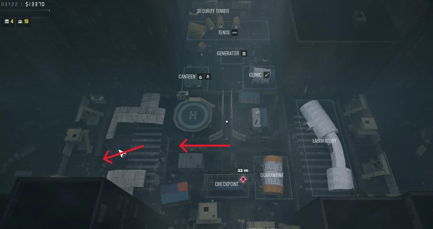 Многие игроки теряются, так как редко посещают границы лагеря до получения этого квеста. Чтобы найти идеальную огневую позицию, отправляйтесь на перекресток, ведущий к Лаборатории и Блоку выживших. Оттуда двигайтесь на запад.