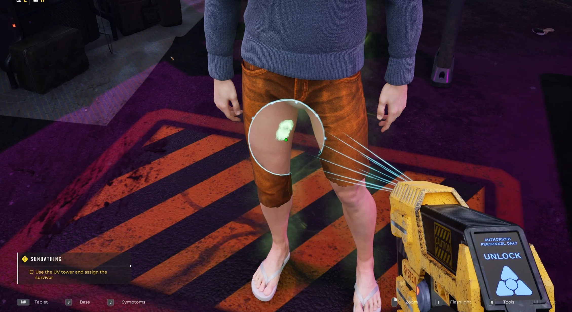 Устройство открывается на 19-й день и включается переключателем на рабочем месте. Пятна на вещах или светящиеся узоры на коже указывают на инфекцию и необходимость устранения субъекта, тогда как простое зеленое свечение или дымка вокруг тела считаются нормой.