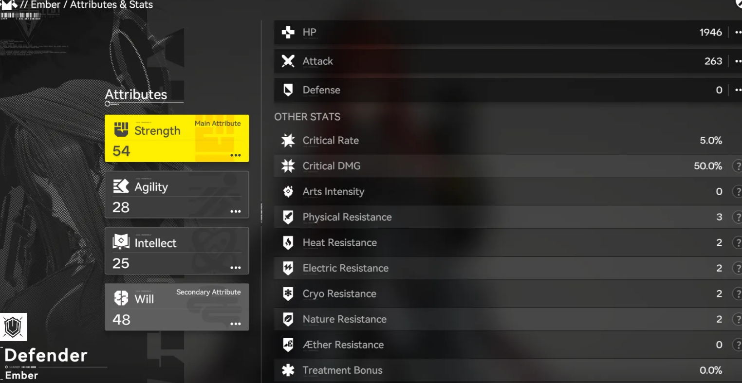 Эффективность оперативника зависит от четырех базовых параметров: Силы, Ловкости, Интеллекта и Воли. Эти показатели не только повышают выживаемость или лечение, но и напрямую увеличивают атаку героя, если совпадают с его доминирующими атрибутами, указанными в профиле желтым и серым цветом.