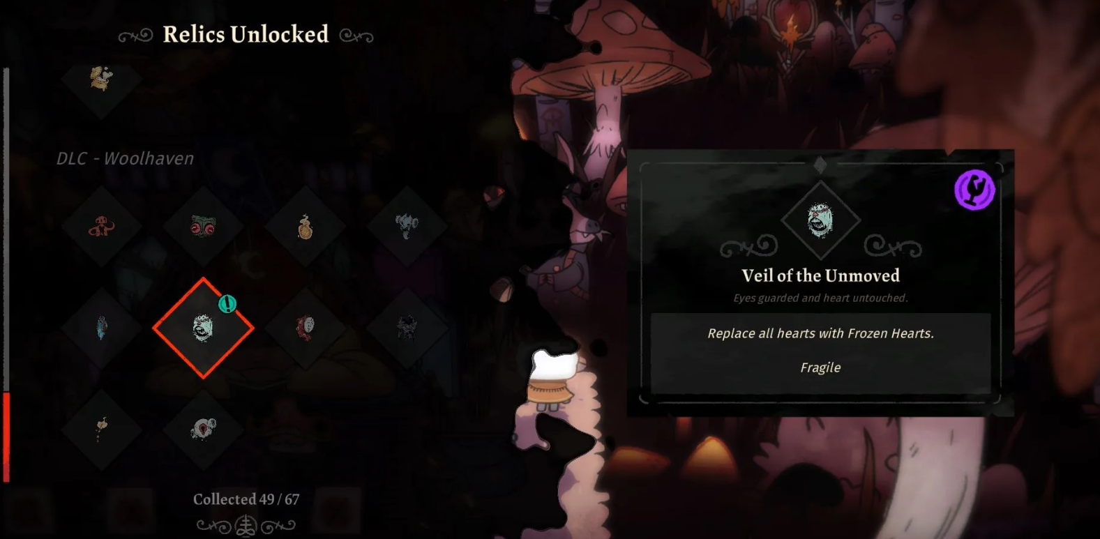 Второй глаз даёт реликвию «Покров недвижимого». Это также одноразовая реликвия, которая заменяет все сердца на Ледяные сердца, накладывающие эффект заморозки на противника при ударе